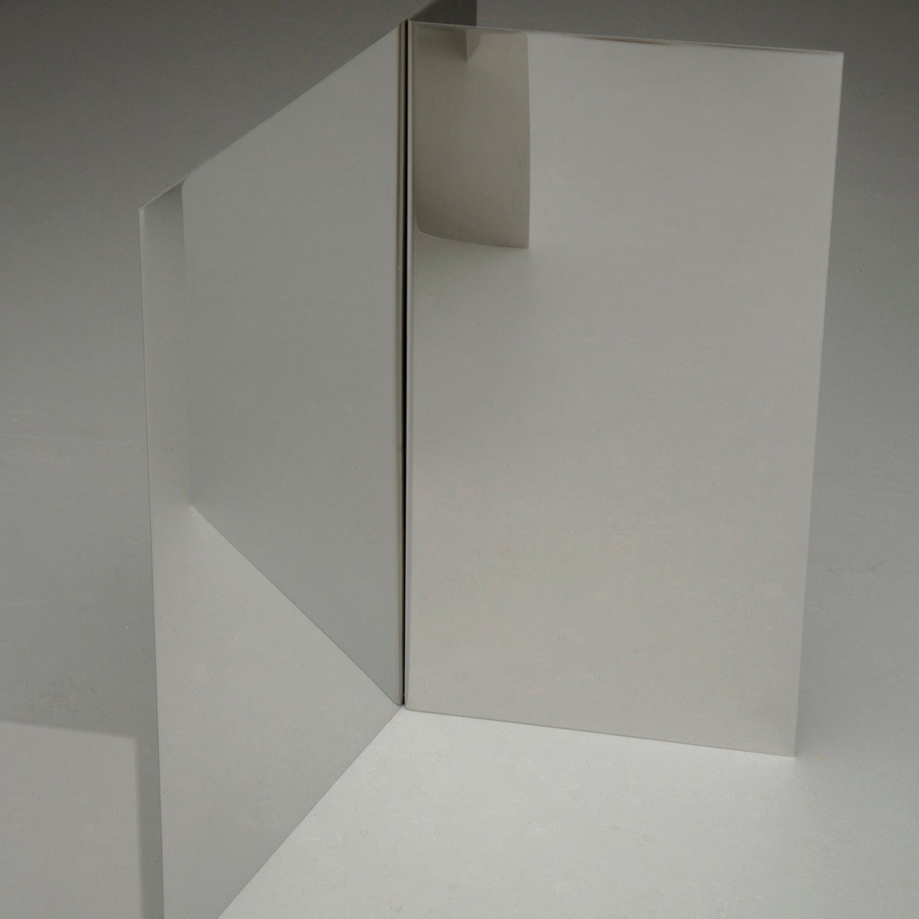 Polished stainless steel turned into a 3-dimensional shape by folding only one plate.