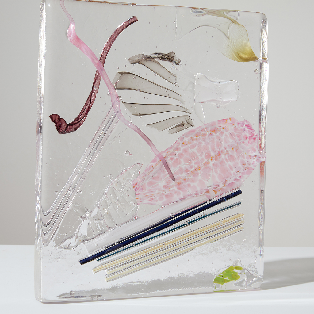 Jess Humphrey is a multi-disciplinary artist and designer living in Corning, NY. After 20 years working as a fashion designer in NYC, she shifted her focus to making art full time in 2019. Her collage work is surrealist, capturing alternate realities and dream states. She is currently exploring collage, glass and how the two mediums intersect.