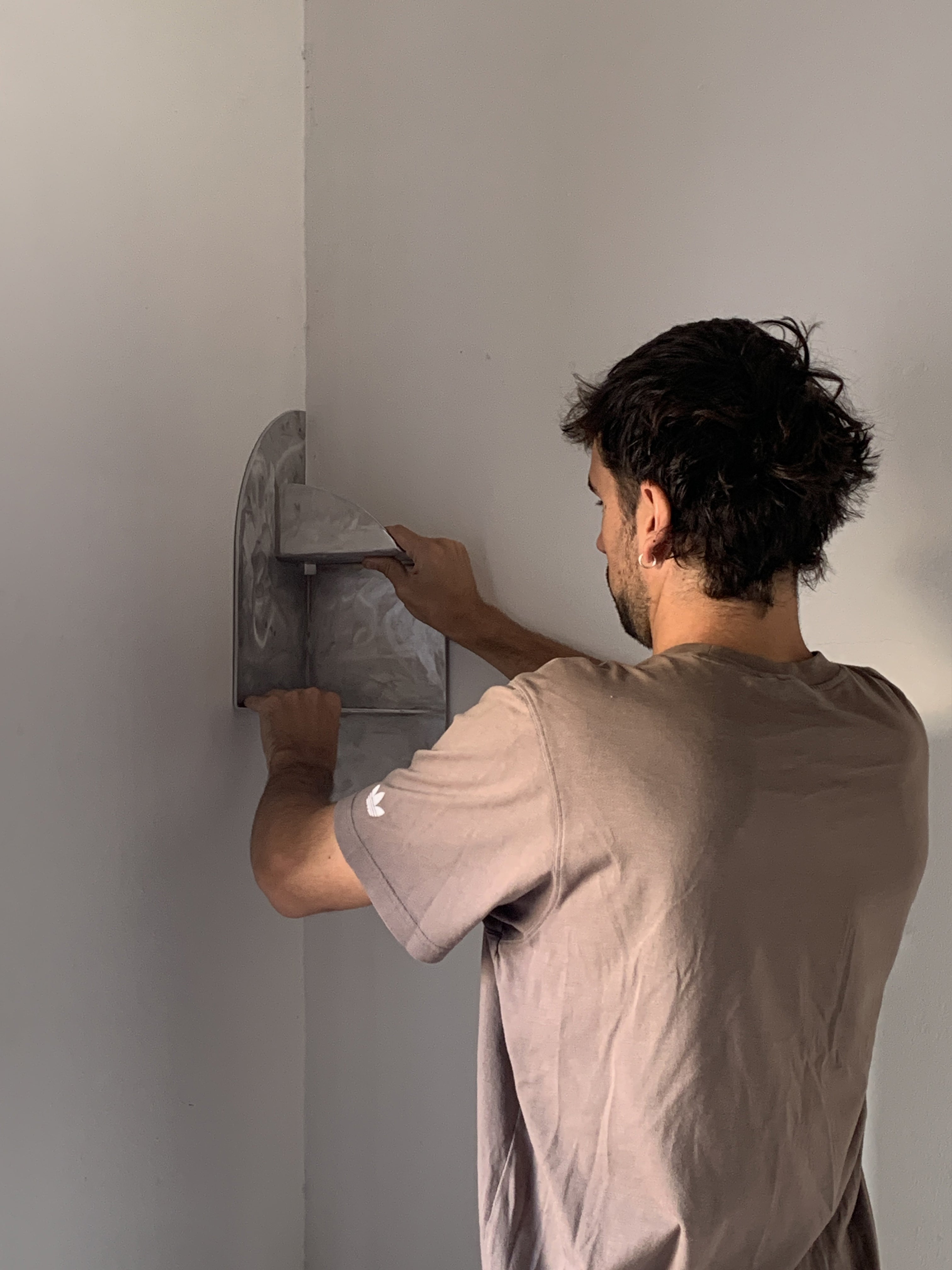 Corner Shelf 0001 “Hasta el fuego mismo necesita respirar”. Corner shelf to be used vertically, yet also can be used horizontally.