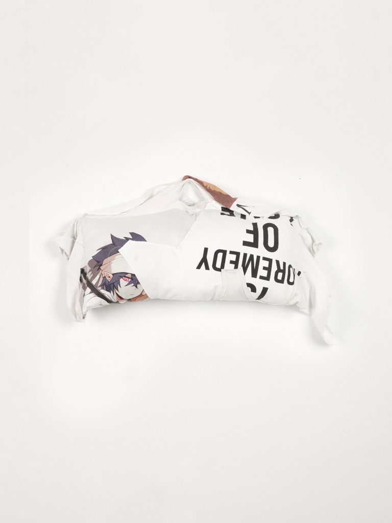 Founded in Copenhagen in 2021, Puer Parasitus works within the field of styling, costume design and commissioned pieces. The label creates sculptural pieces and unique objects within the field of art and explore themes linked to parenthood, sexuality, parasitical tendencies and the maternal bond. All works are unique and hand crafted from second hand sourced textiles by Puer Parasitus in their atelier in Copenhagen, DK.