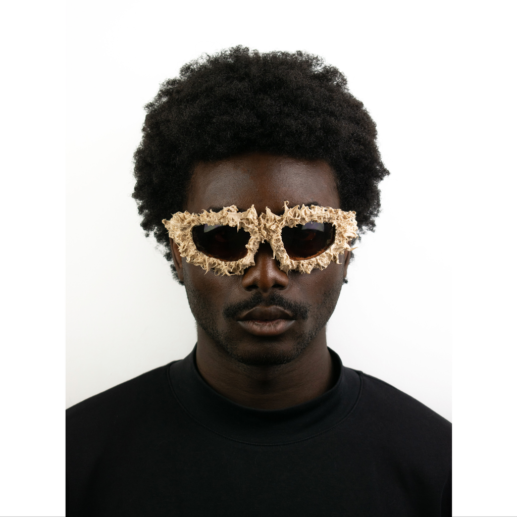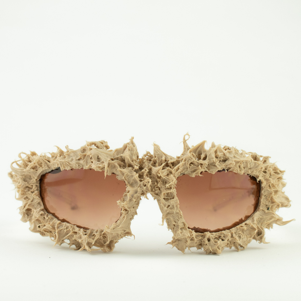 These glasses in rubber interrogate the origin of the materials through a random and unstructured aesthetic.