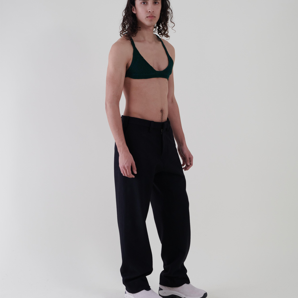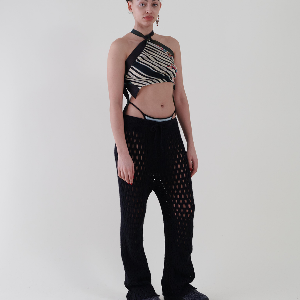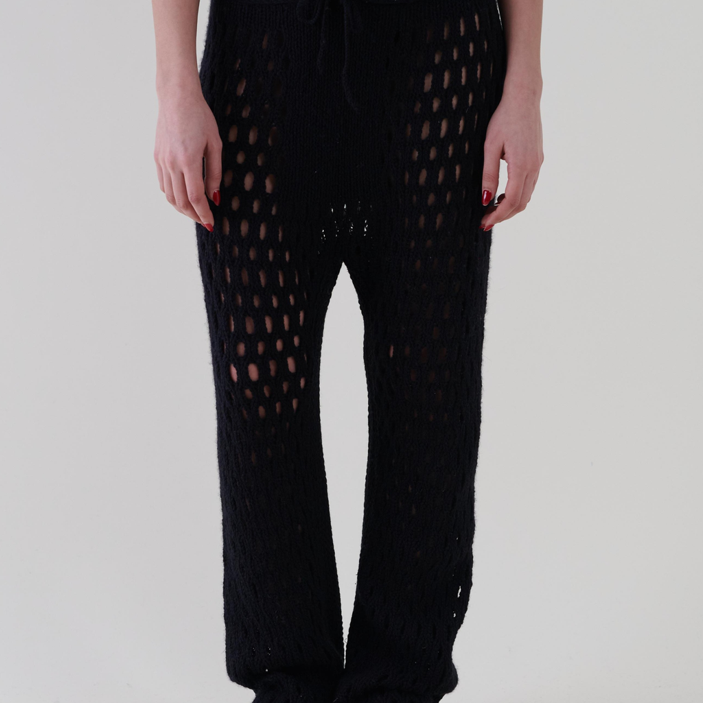 Casual trousers made of black Alpaca and woolen crochet ;