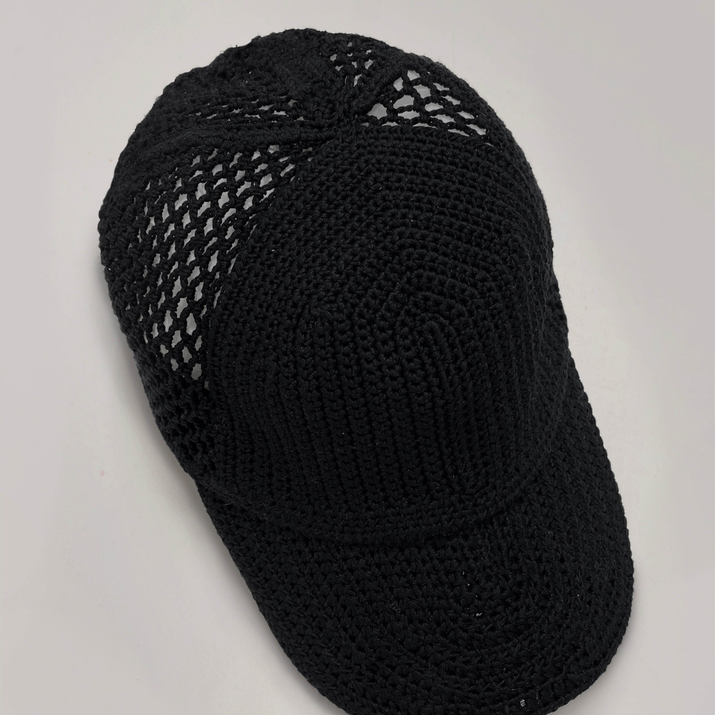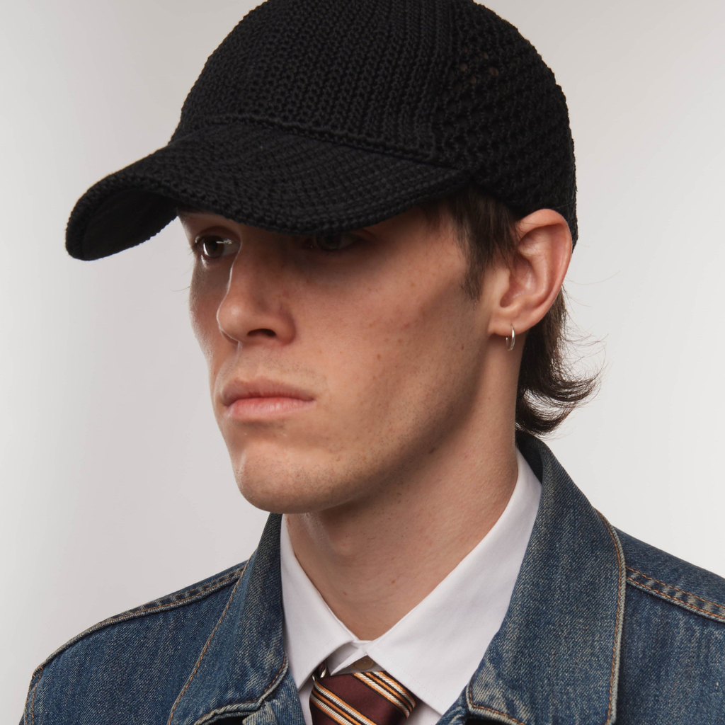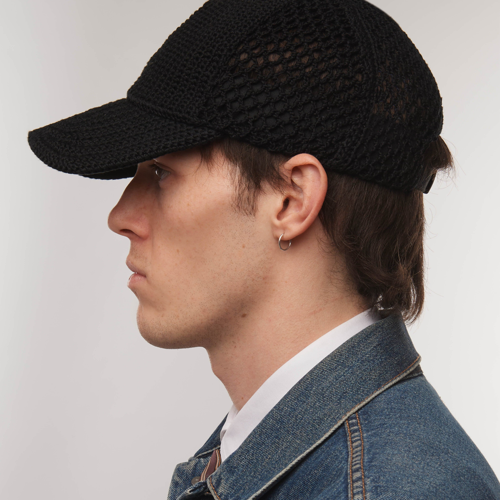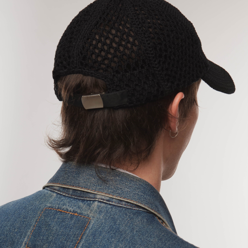 Iconic trucker design translated into the brand’s textural language of handmade crochet. The reinforced visor and the inside lining are giving the cap the necessary structure and feel. Fit is adjustable on the back with a locker.