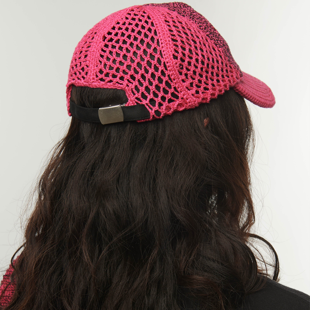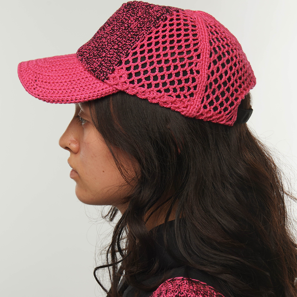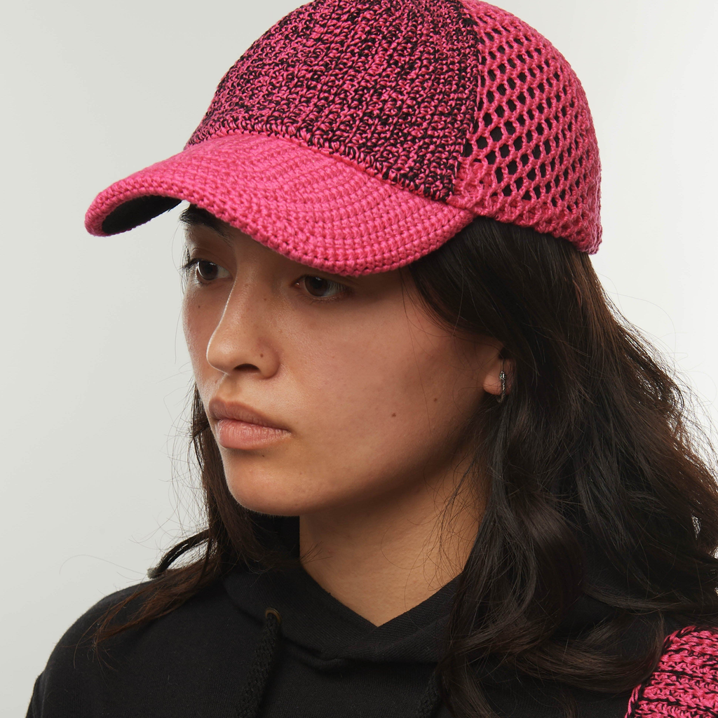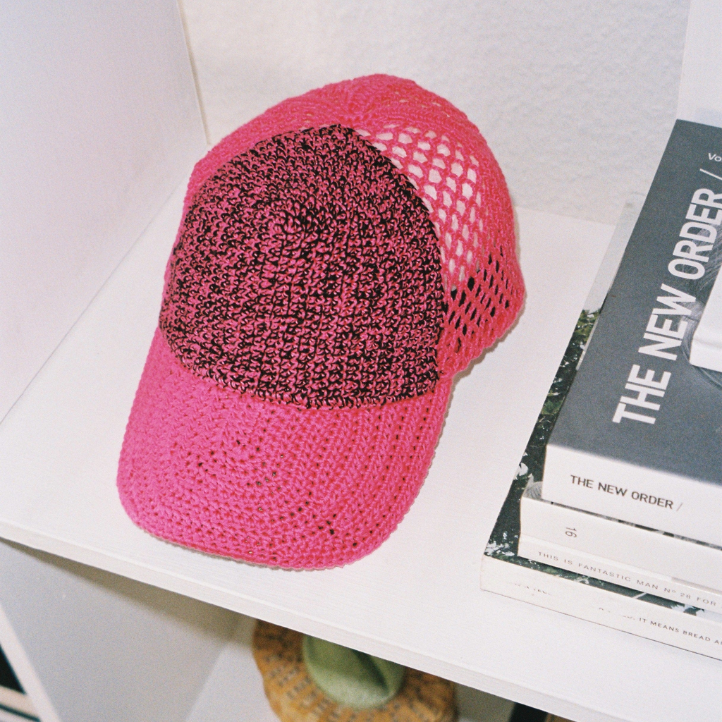 Iconic trucker design translated into the brand’s textural language of handmade crochet. The reinforced visor and the inside lining are giving the cap the necessary structure and feel. Fit is adjustable on the back with a locker.