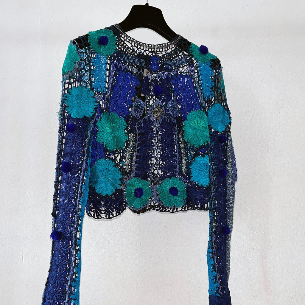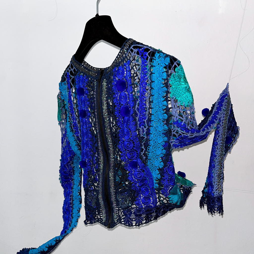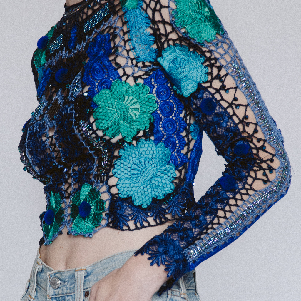 Lou de Bètoly is a French designer who works and lives in Berlin. Her main inspiration derives from chaos, surrealism, nostalgia, decadence, extravagance and oneirism. Adorned with embellishments, her intricately sensual crochet pieces reiterate her ‘wild at heart’ state of mind.