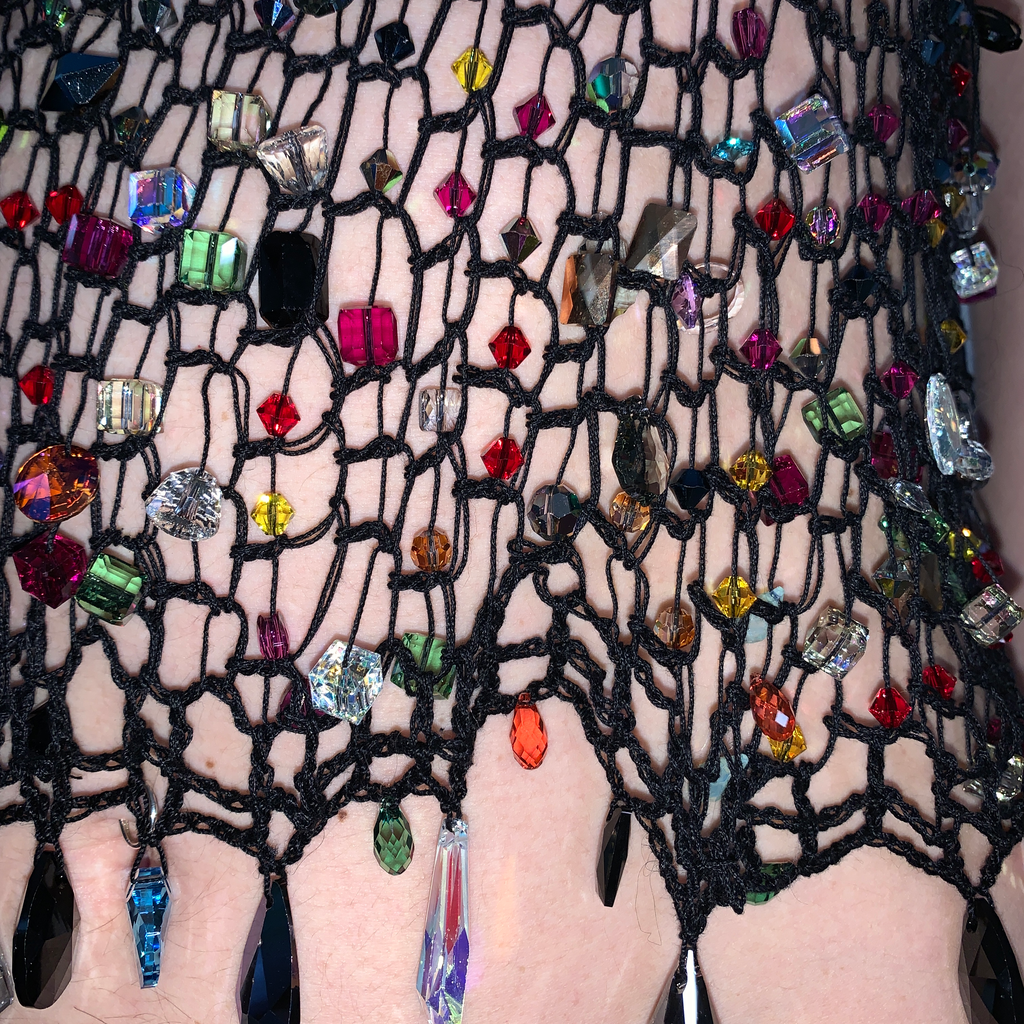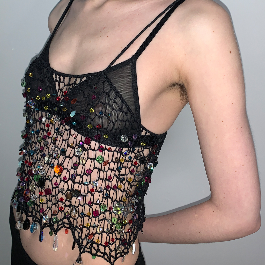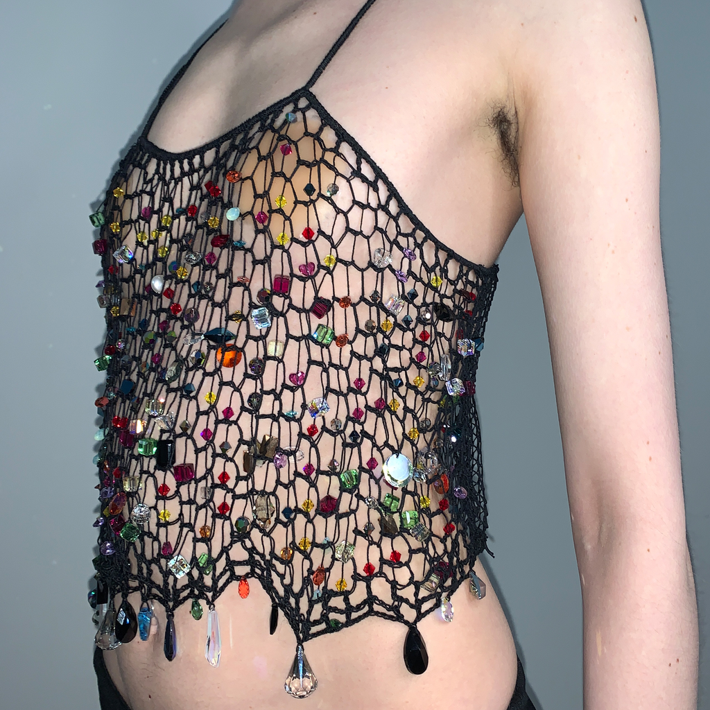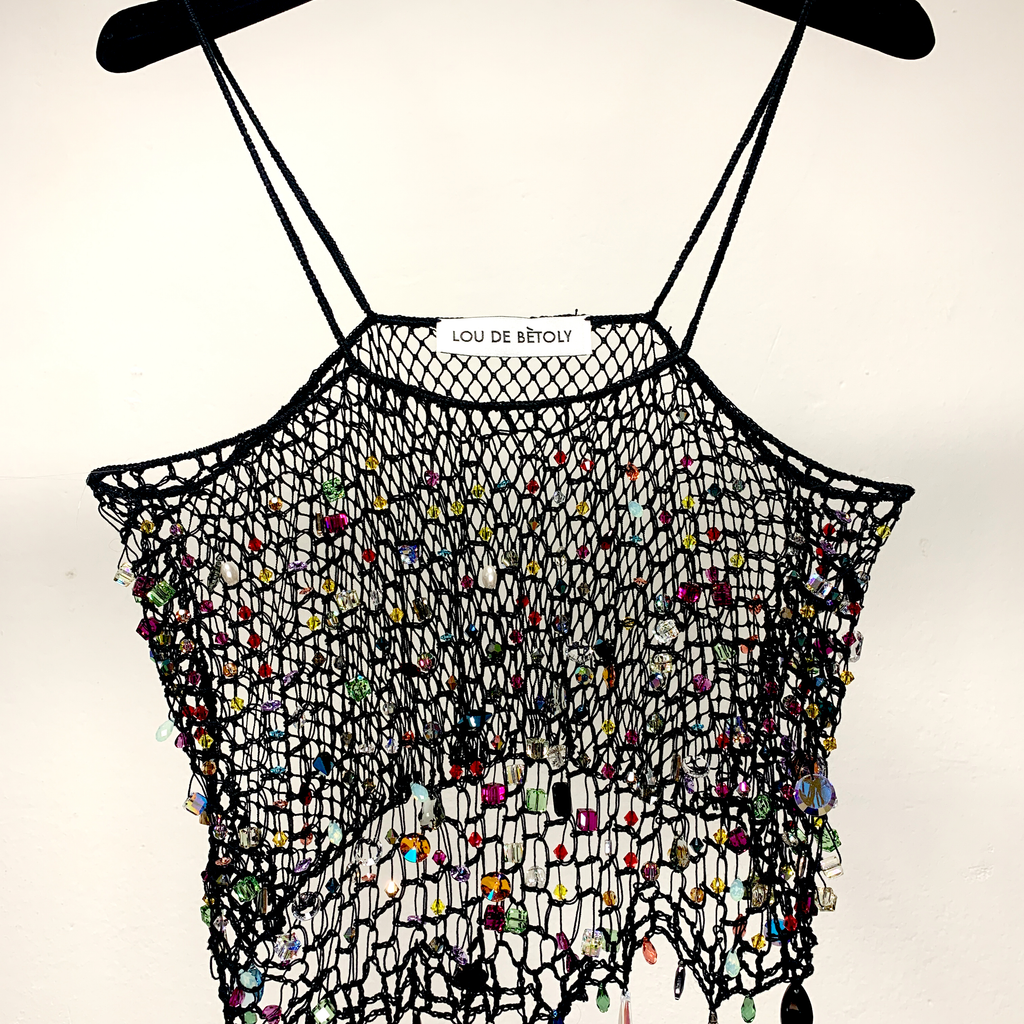 Lou de Bètoly is a French designer who works and lives in Berlin. Her main inspiration derives from chaos, surrealism, nostalgia, decadence, extravagance and oneirism. Adorned with embellishments, her intricately sensual crochet pieces reiterate her ‘wild at heart’ state of mind.