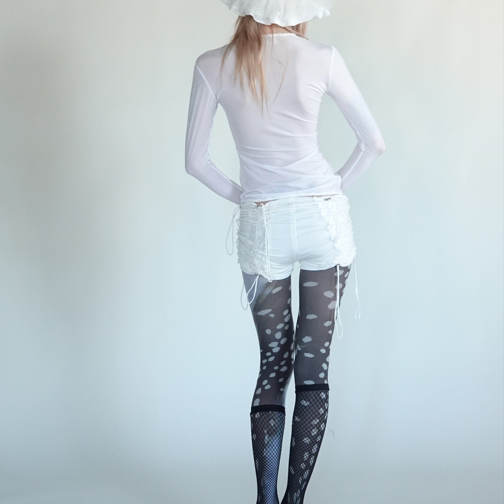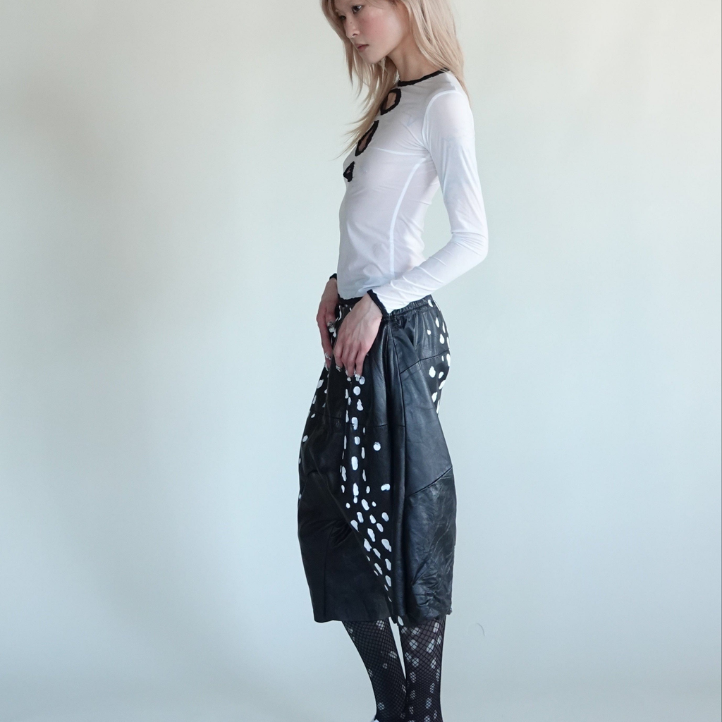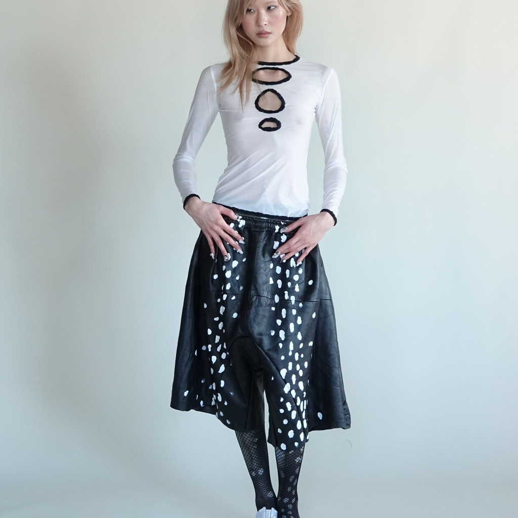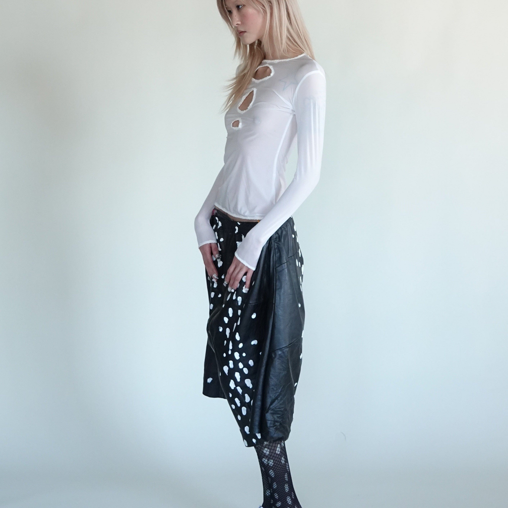 MEW FW25 cutout long sleeve top with lace trim// BAMBI long sleeve top with cutouts on the chest, stretchy lycra will adjust to your figure