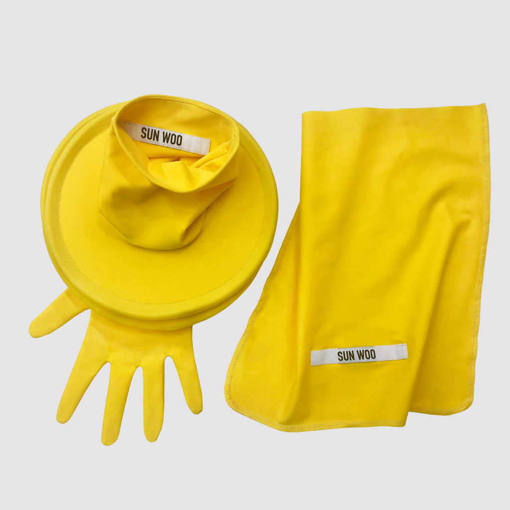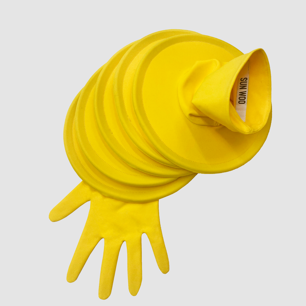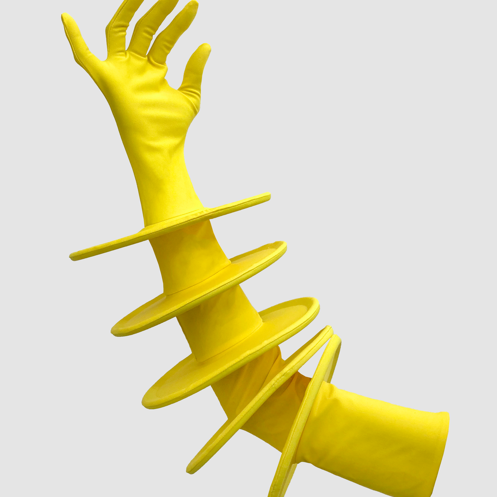 Discs single glove with wire inside by Sun Woo, made from recycled nylon jersey fabric. Perfectly fitted from arm to fingers.