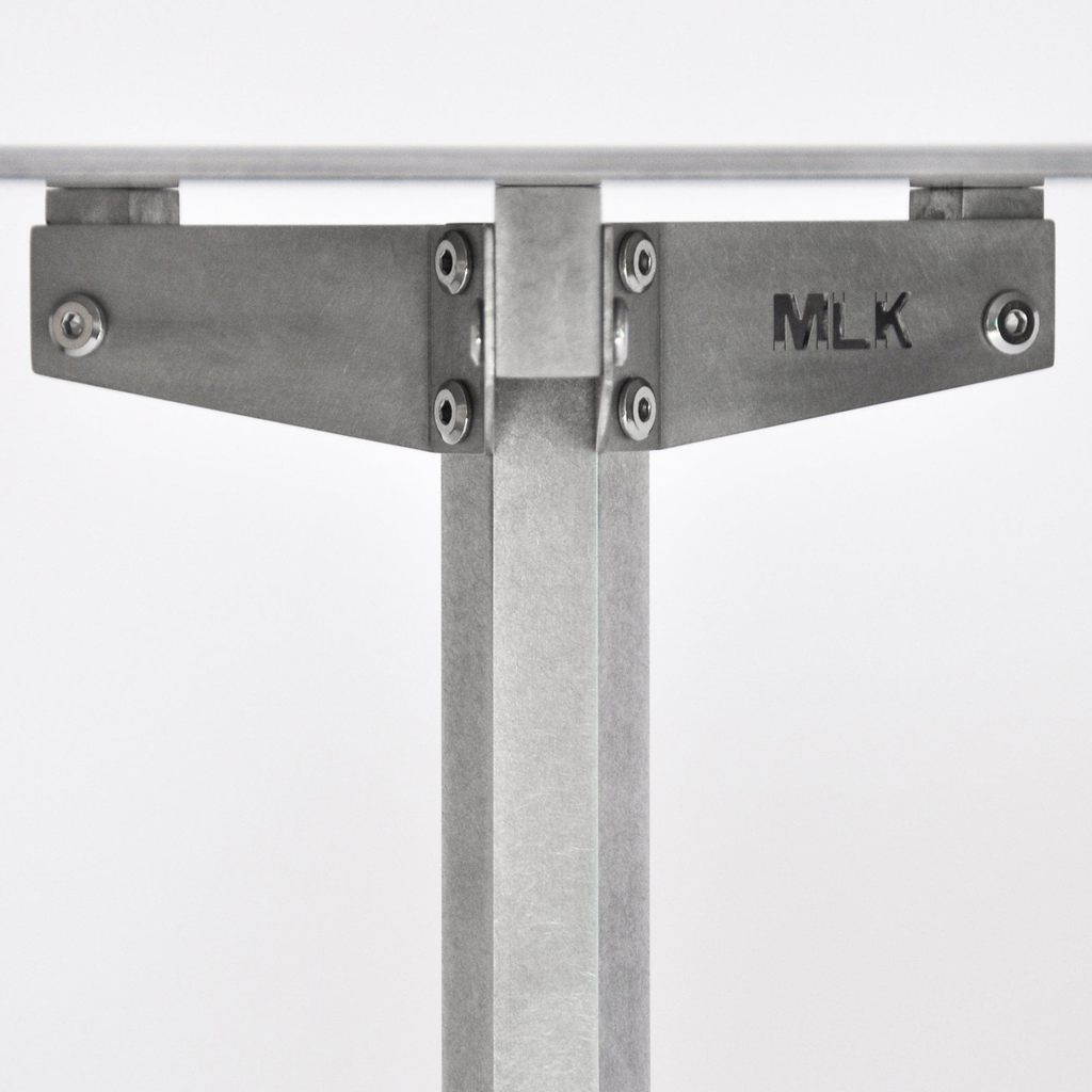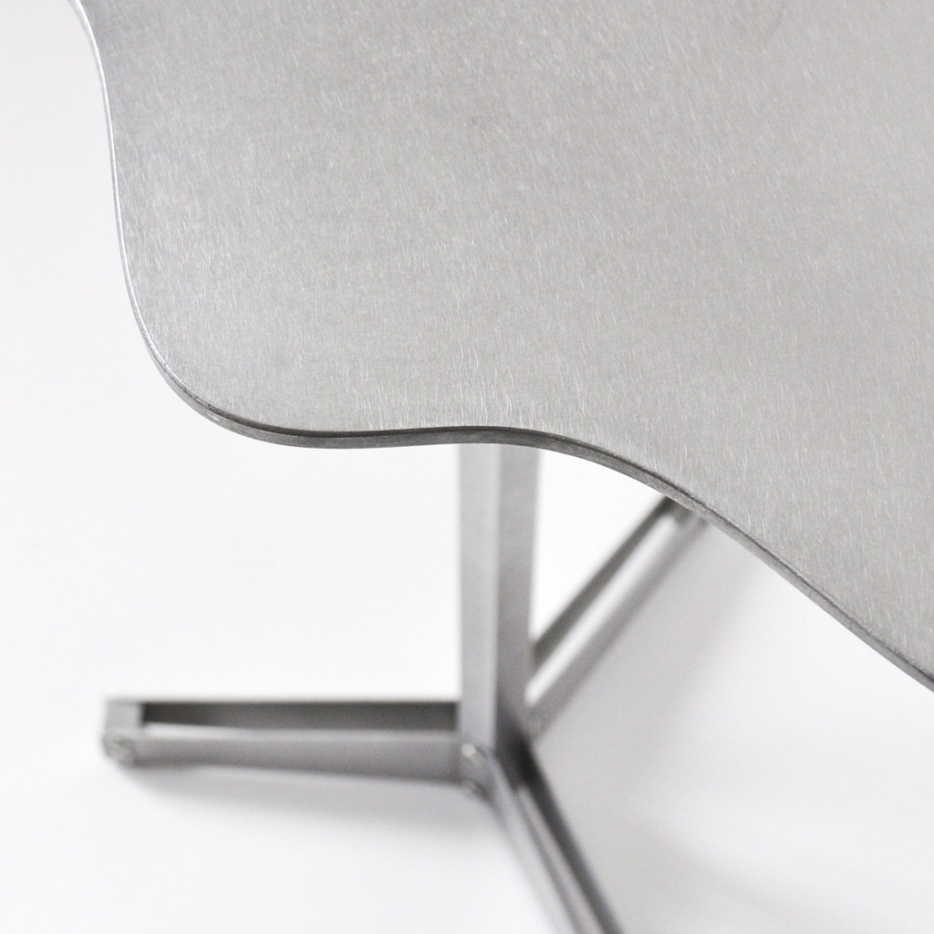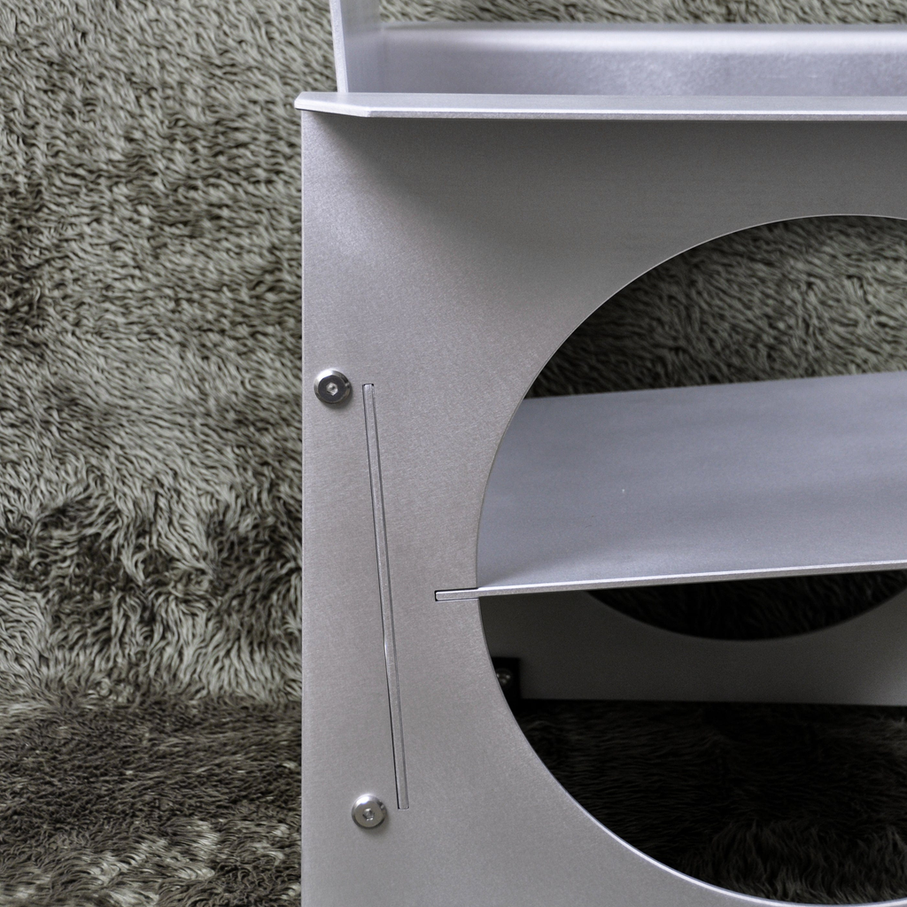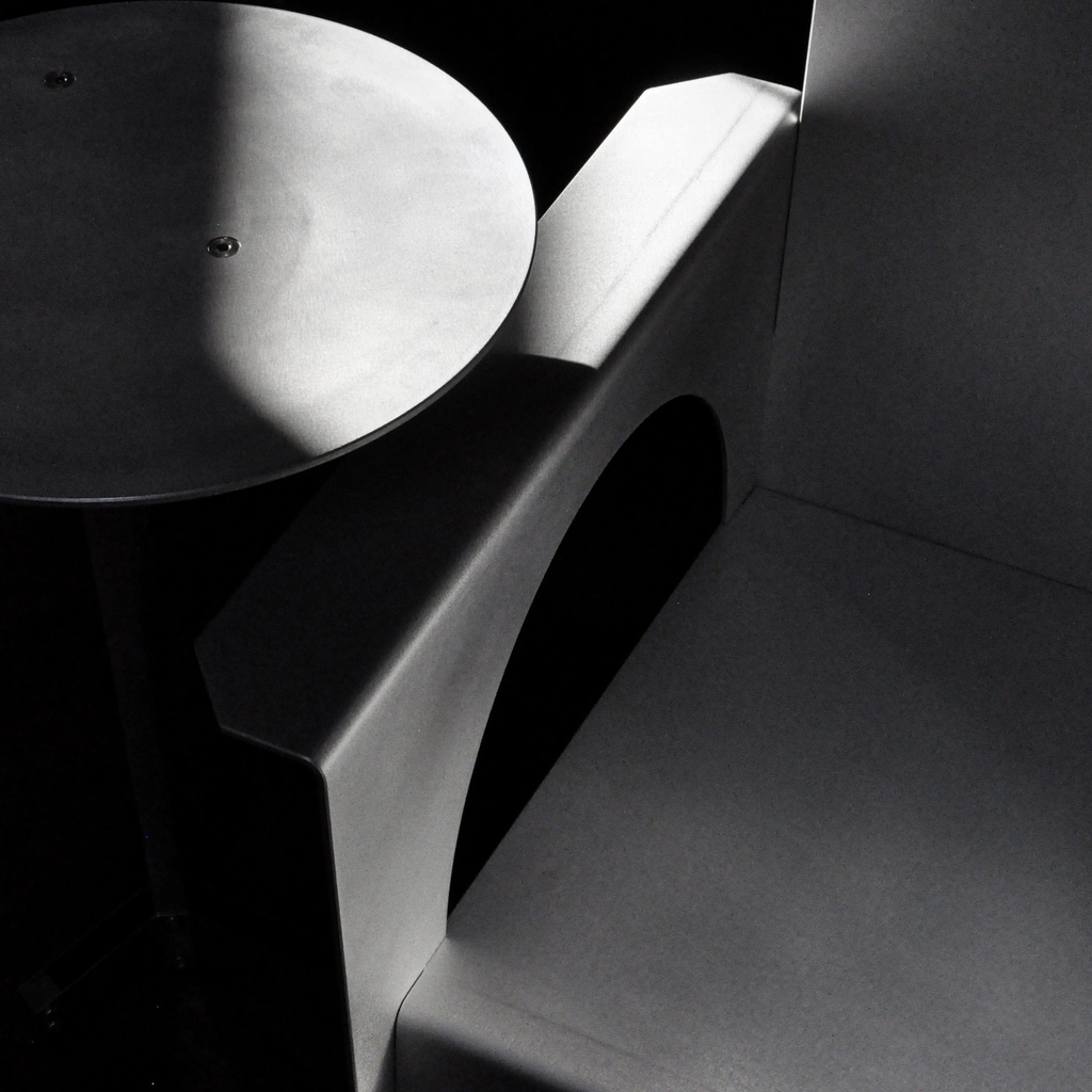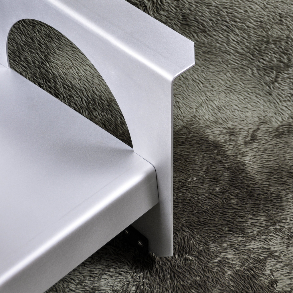 This low armchair by MLK Furniture, crafted from four hand-sanded aluminum sheets, exudes a bold neo-industrial appeal. Designed with a seating height of 28 cm, it combines a raw, minimalist aesthetic with the precision and elegance of metalwork. The chair's sleek, geometric lines and refined surface finish give it a striking presence, making it a standout piece that’s as sculptural as it is functional.