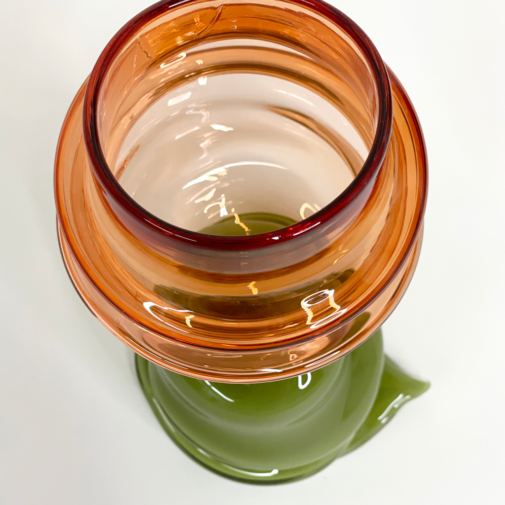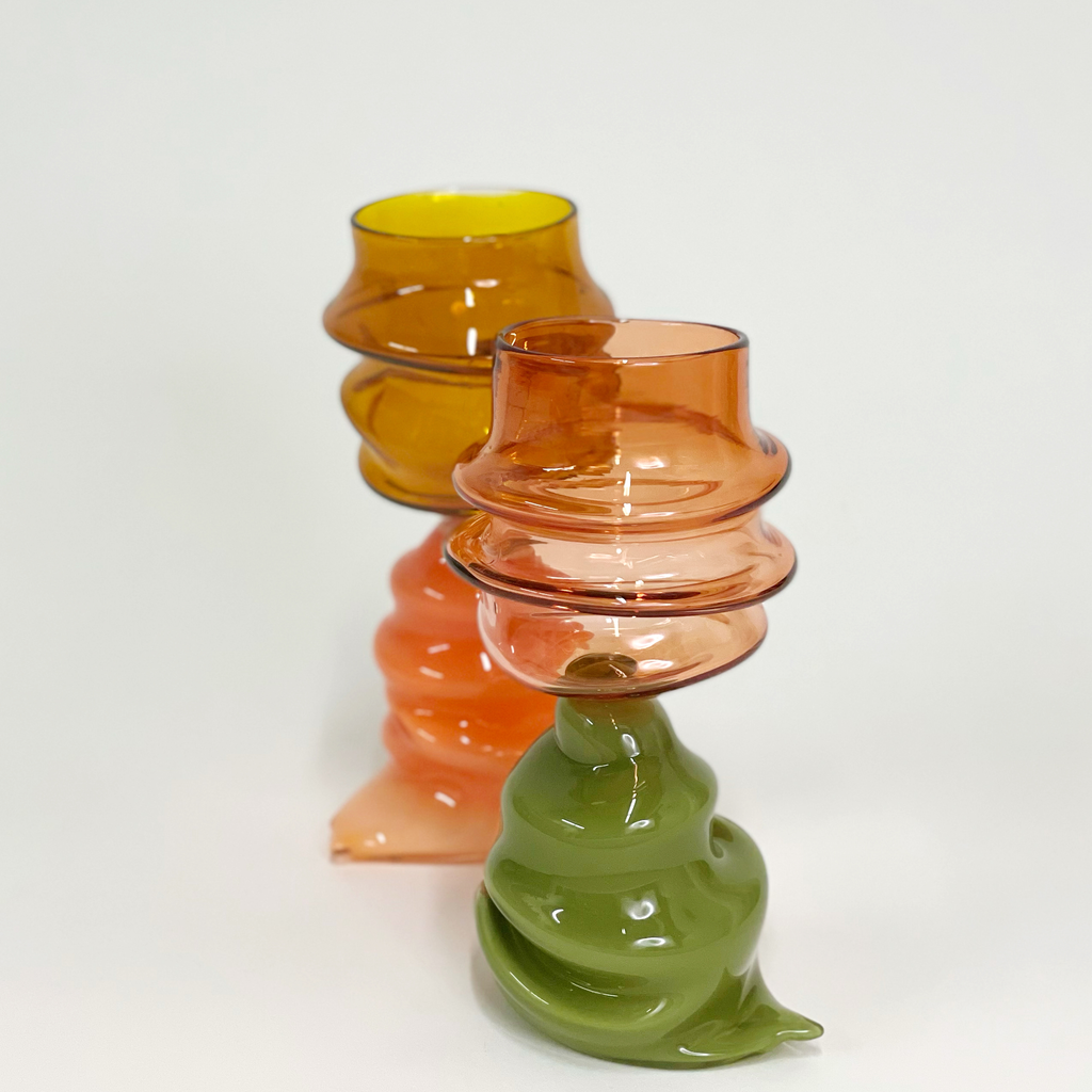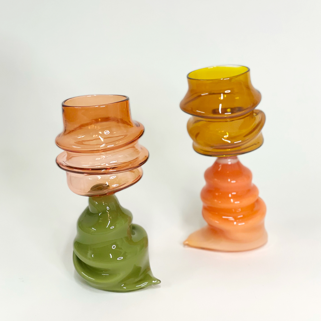 Each piece is hand blown in Brooklyn NY by Grace Whiteside out of soft glass. Avoid introducing boiling or hot substances along with microwaves and dishwashers. Hand wash only and handle with care.