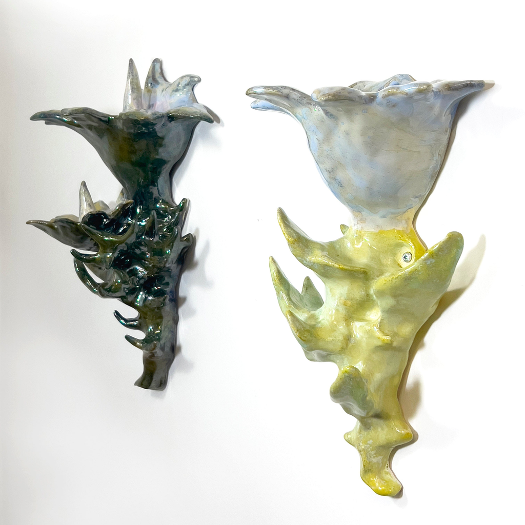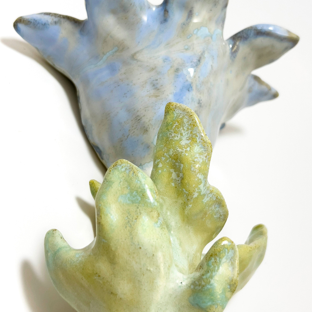 Kaley Flowers is a ceramic artist based in Ontario, Canada. Inspired by digital technologies, meme culture and online communities, she aims to solidify the nature of the Internet through the permanency of ceramic form. Creating both functional and sculptural work, her designs are inspired by materials, alchemical processes, and natural forms.