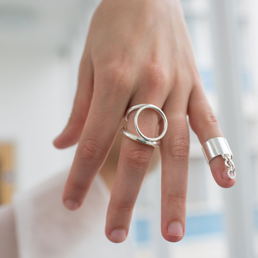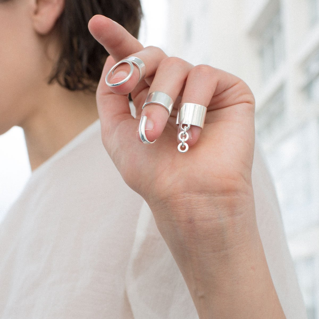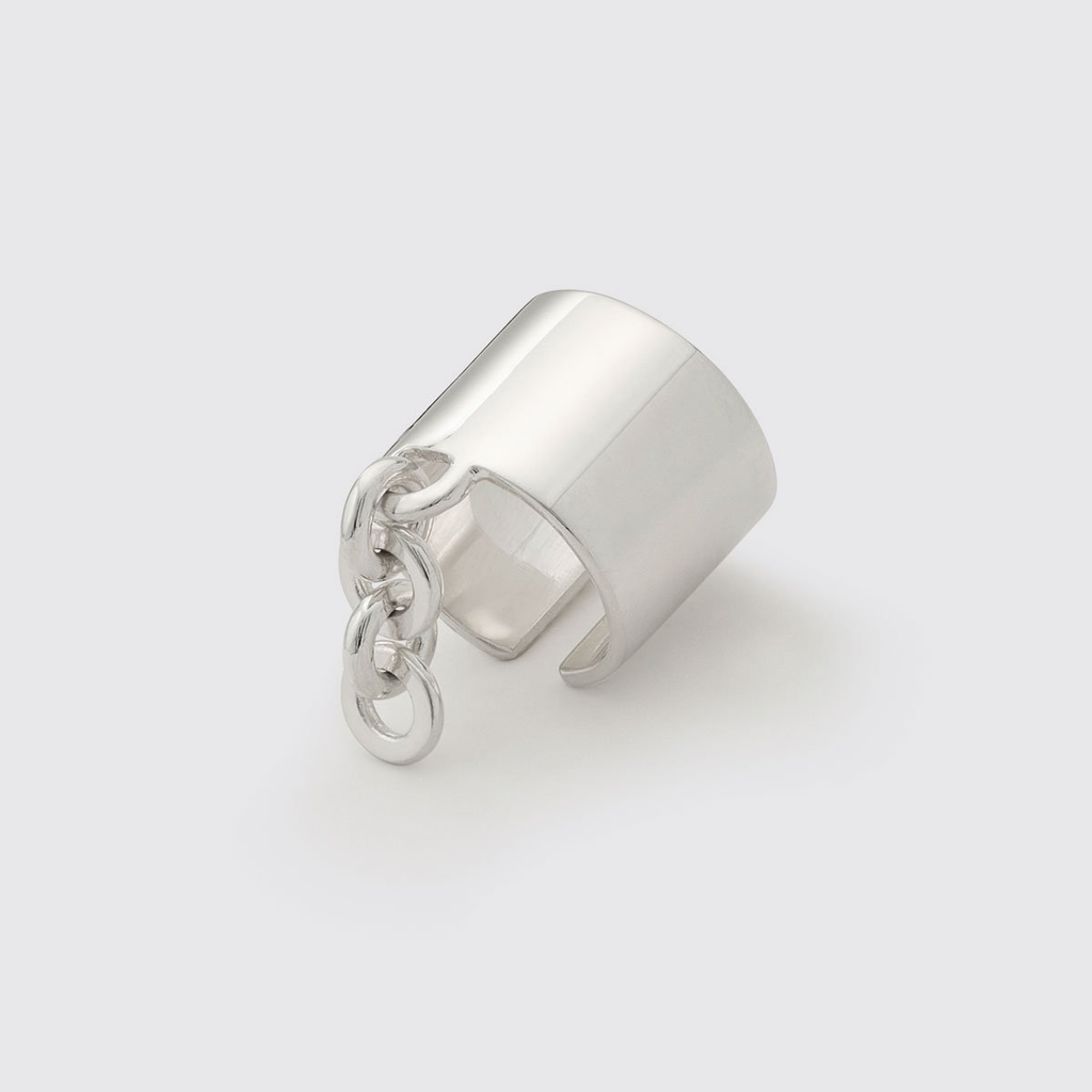 Ring made from sterling silver with chain detail. Can be worn as a midi ring as gap in the ring shank allows for size adjustment.