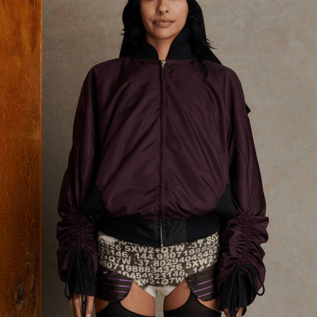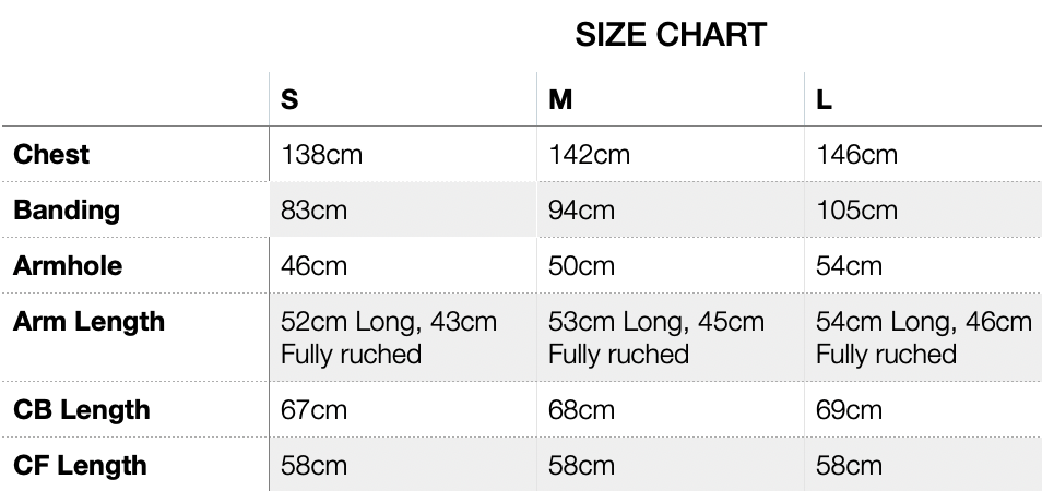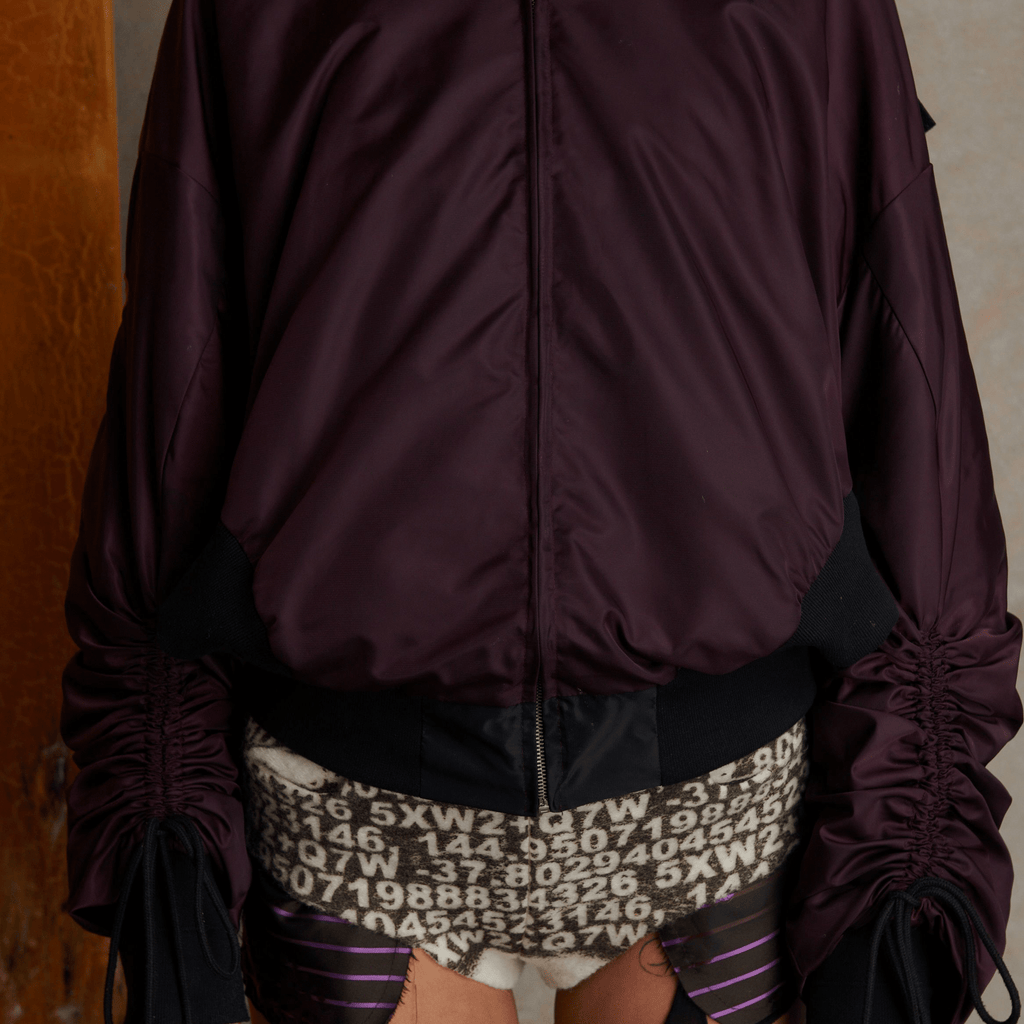 Two ruched channels at the lower arm with cords to shorten or lengthen the length