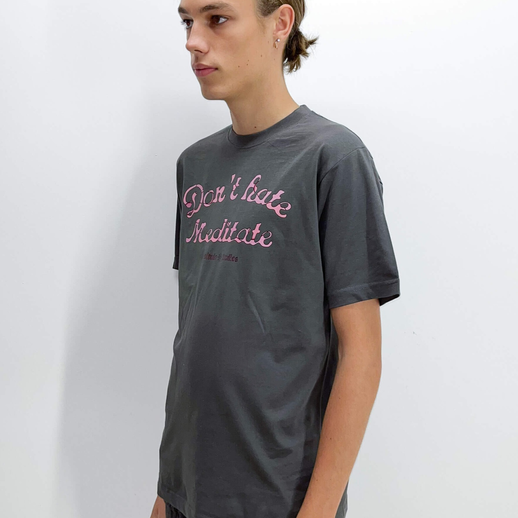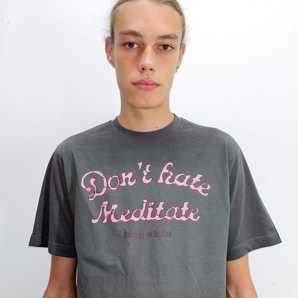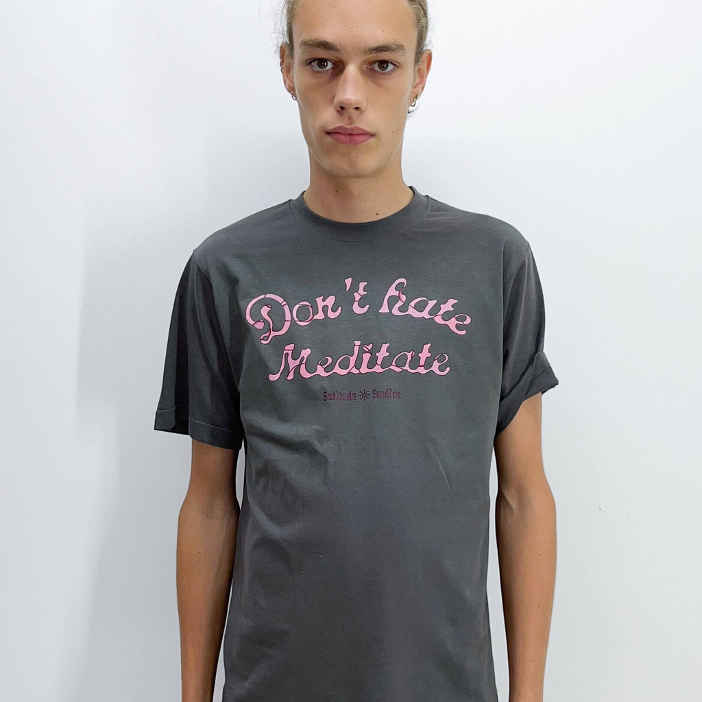 Cotton T-shirt with "Don't Hate Meditate" Graphic