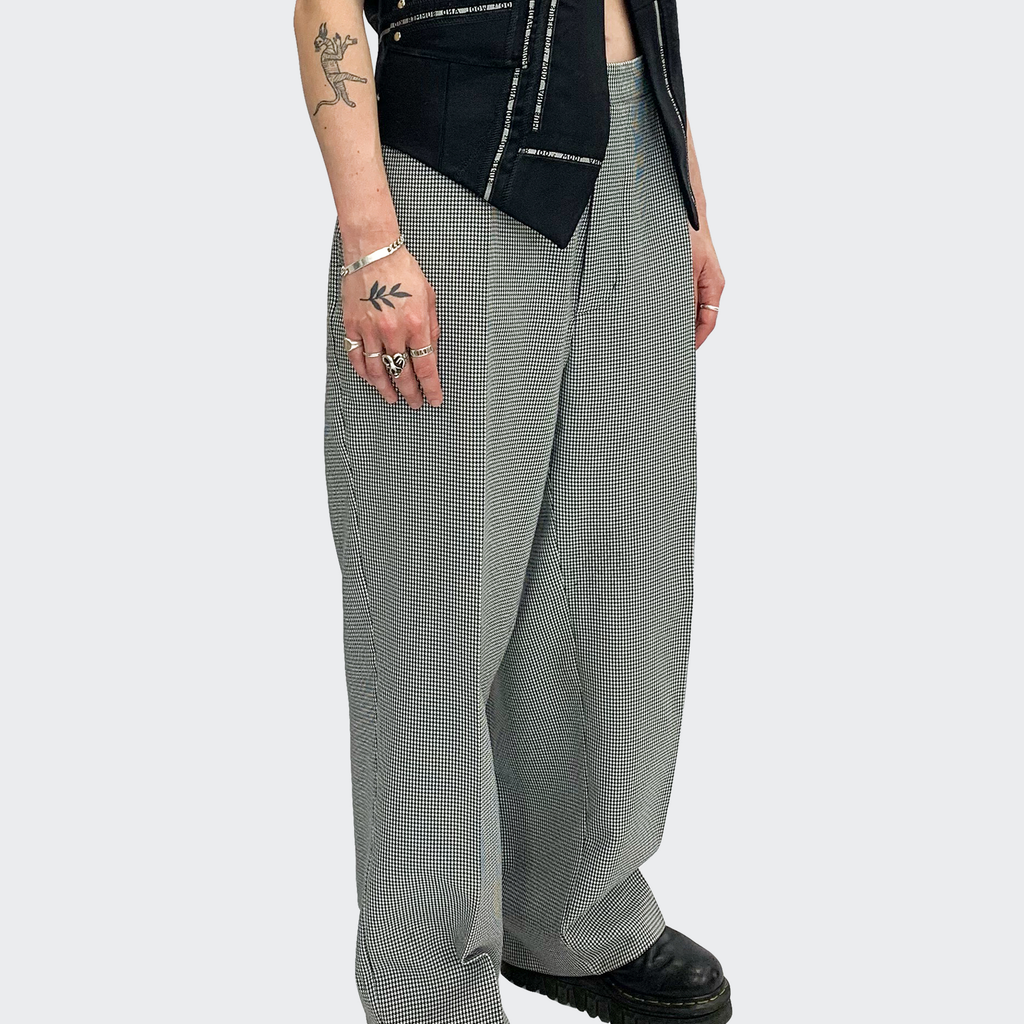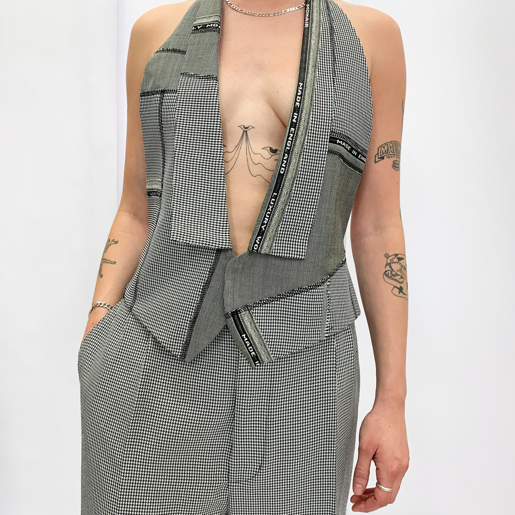This product is made from deadstock polyester houndstooth weave, therefore imperfections are expected as a sign of unique craftsmanship