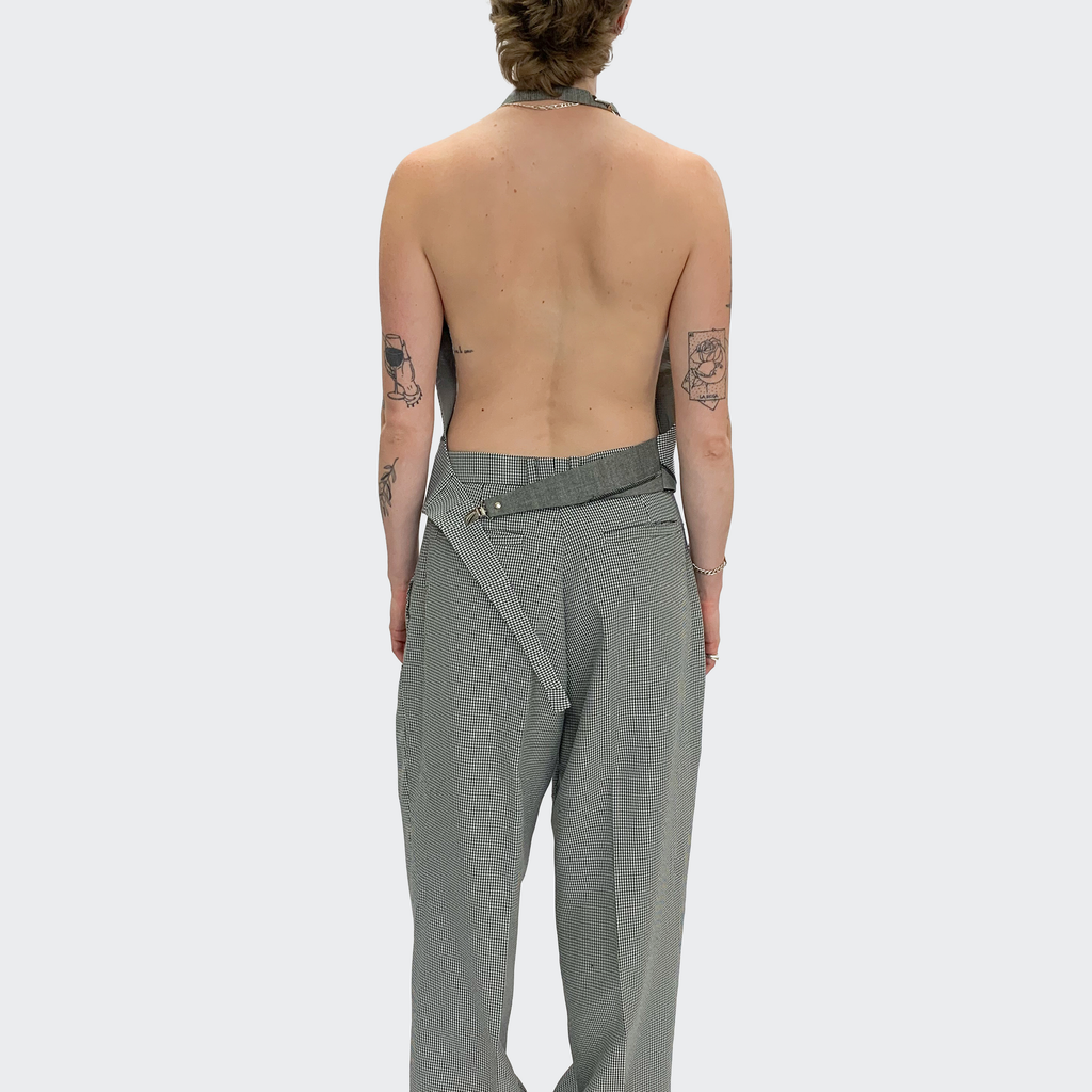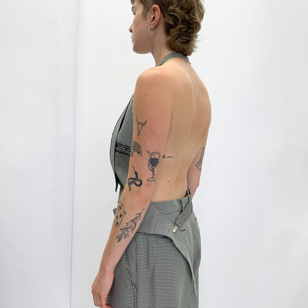 Ella Boucht is a London-based Finnish fashion designer who graduated from Central Martins Fashion MA in 2020. Through androgynous tailoring and sensual motifs influenced by BDSM, Boucht’s work celebrates the LGBTQI+ community, explores gender and queerness and breaks beyond the barriers of heteronormative societal ideals.