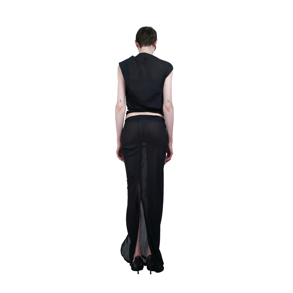 Danish-born Sia Arnika founded her label in Berlin to explore the interplay between minimalism and maximalism. Her collection is identifiable by deconstructed features and bold, one-of-a-kind shapes, which emphasise harmony between opposites. The collection features an assortment of textures and bright colours paired with black, ranging from everyday wear to avant-garde futuristic designs.
