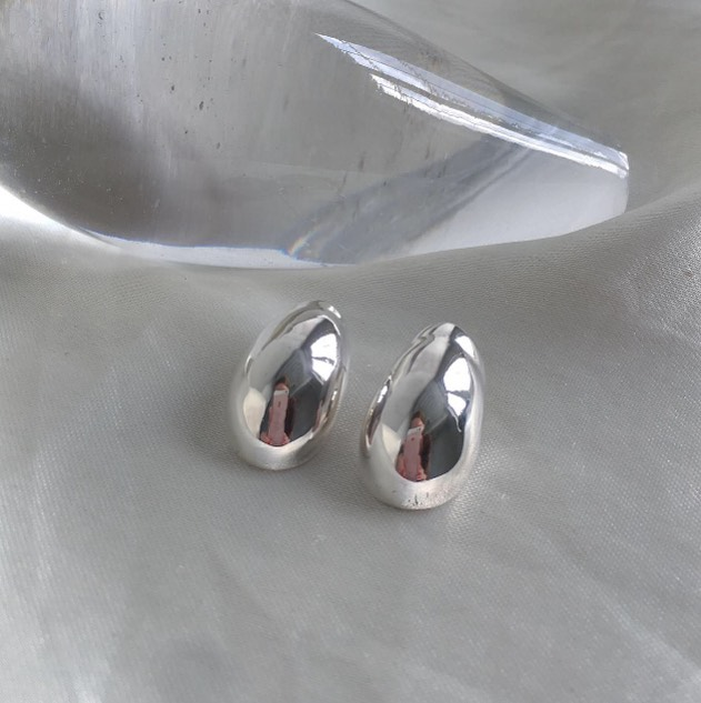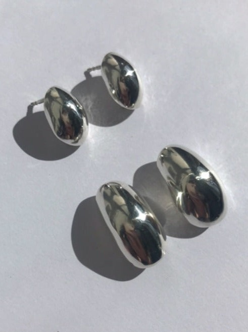 These classic drop earrings are available in two sizes, small and large. Handcrafted in 3mm silver sheet, made by using hammer and hand they get this drop-shell shape. An everyday classic and still a statement for special events. price by pair.