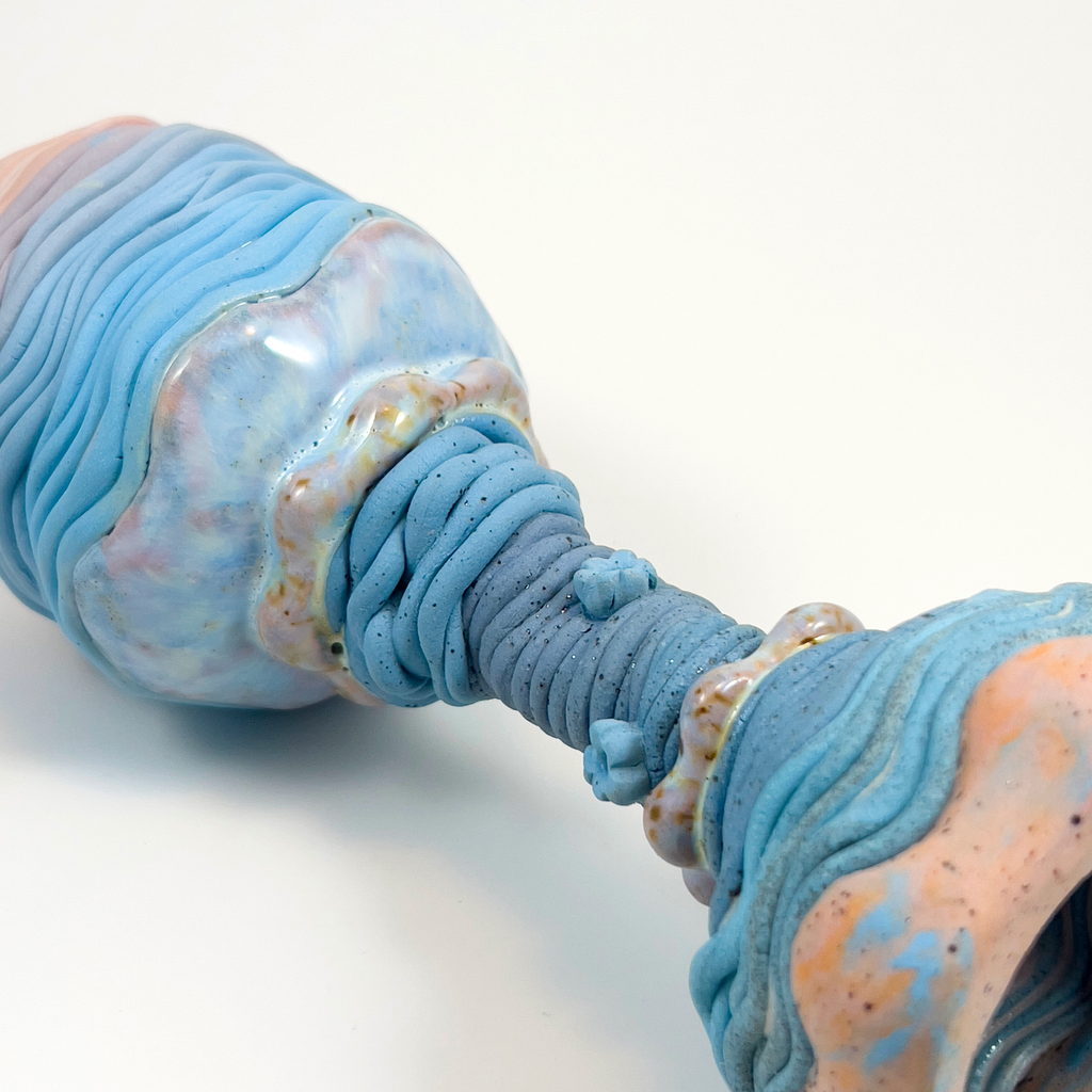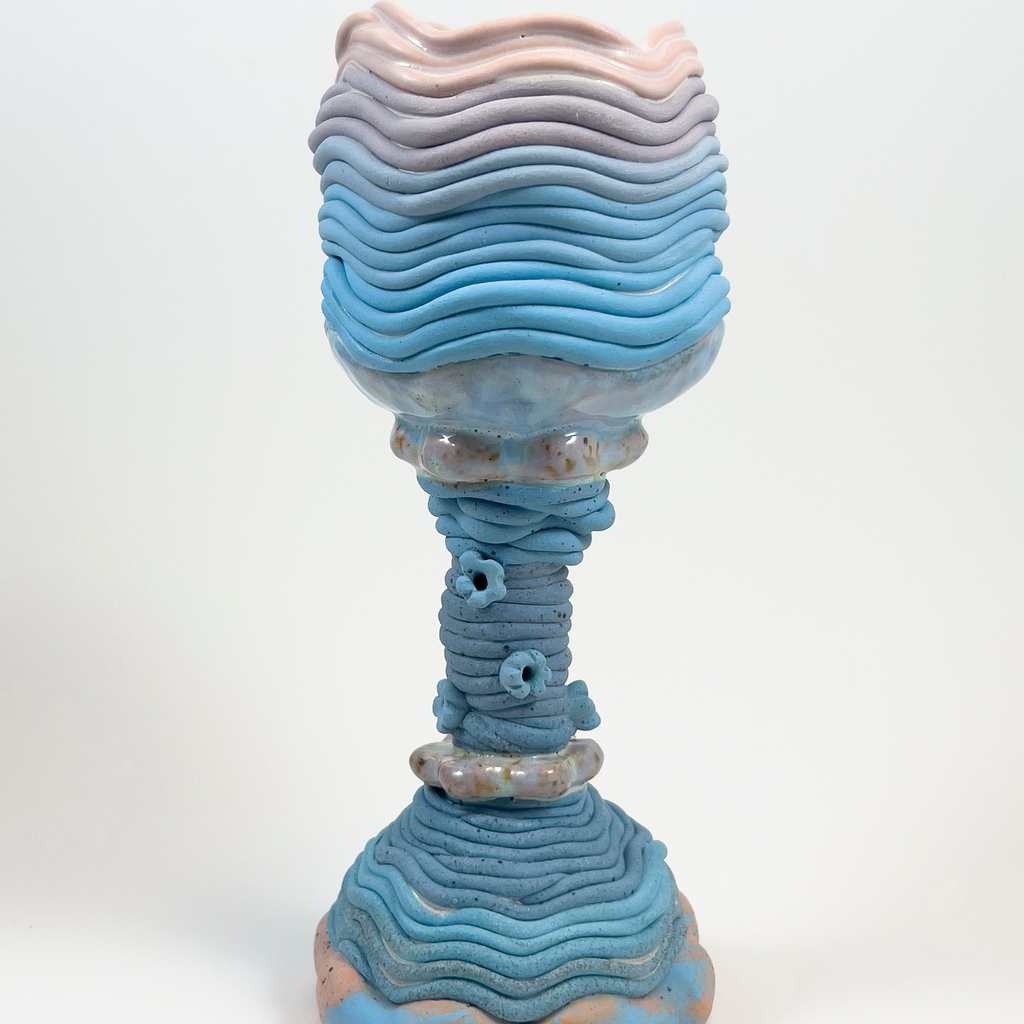 Kaley Flowers is a ceramic artist based in Ontario, Canada. Inspired by digital technologies, meme culture and online communities, she aims to solidify the nature of the Internet through the permanency of ceramic form. Creating both functional and sculptural work, her designs are inspired by materials, alchemical processes, and natural forms.