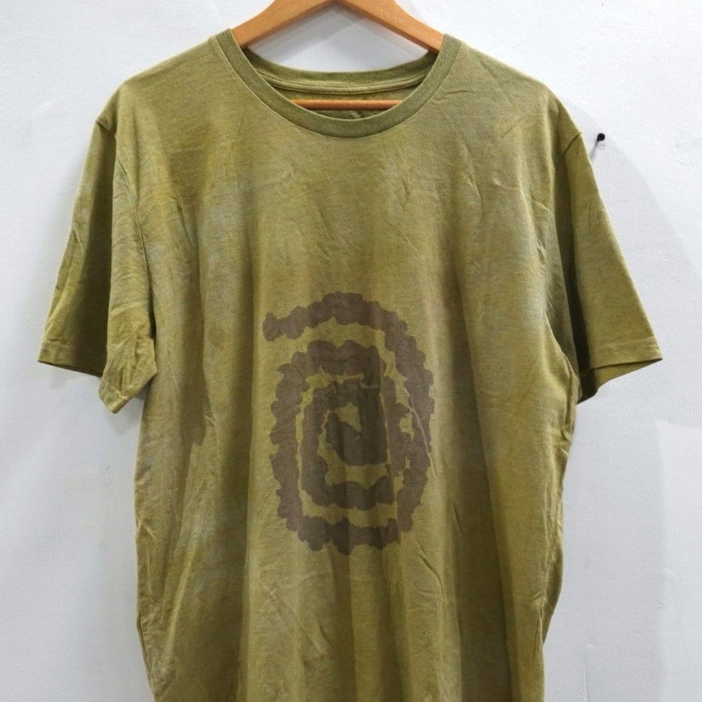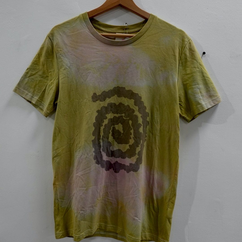 The spiral is a symbol of eternal change, it symbolises evolution, consciousness and creation. Tshirts have been screenprinted with handmade bark ink, with crushed selenite crystals for anti-anxiety properties. Neutral fit and made with salvaged organic cotton.