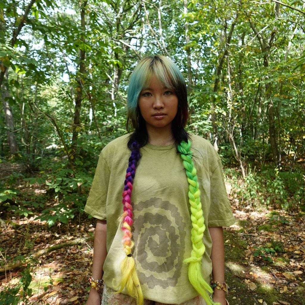 Deeply connected with our natural world and its synchronised patterns, EIRINN HAYHOW carefully explores the foraging of wild plants, herbs and bark. Fascinated by the potential frequency of psychological energy waves emitted from plants and trees, and how these are synchronous with our hearts. She makes all the material for her collections using a combination of intuition and research-led processes. Her playful exploration of natural material has seen her recently exploring the use of living moss, incorporated into knit from foraged nettles and banana yarn.