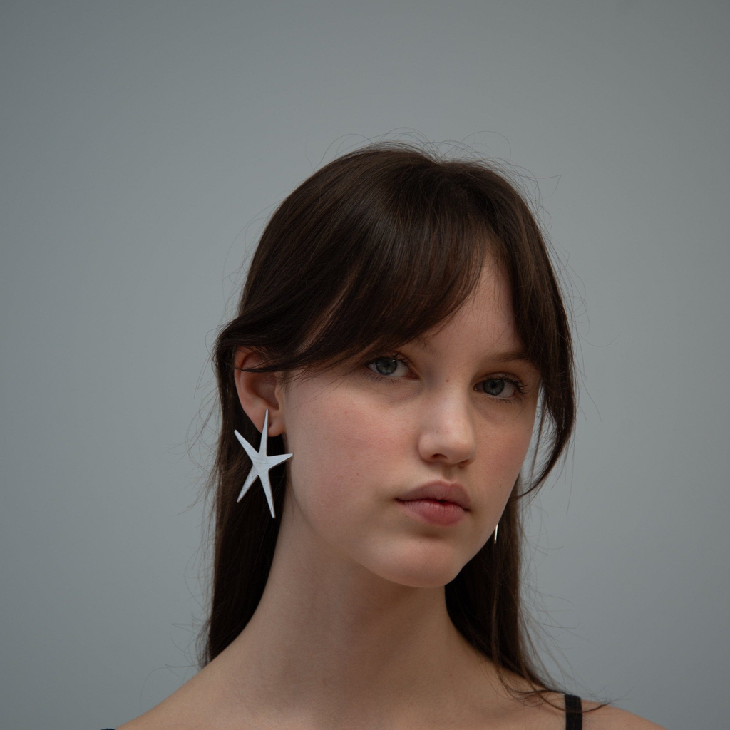 Pair Of Rhodium Coloured Brass Sun Earrings