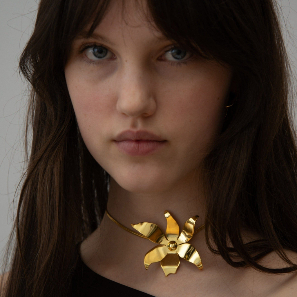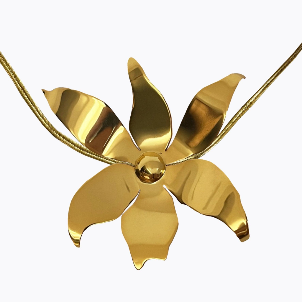 14Ct Gold Plated Brass Flower Pendant On Soutache Cord