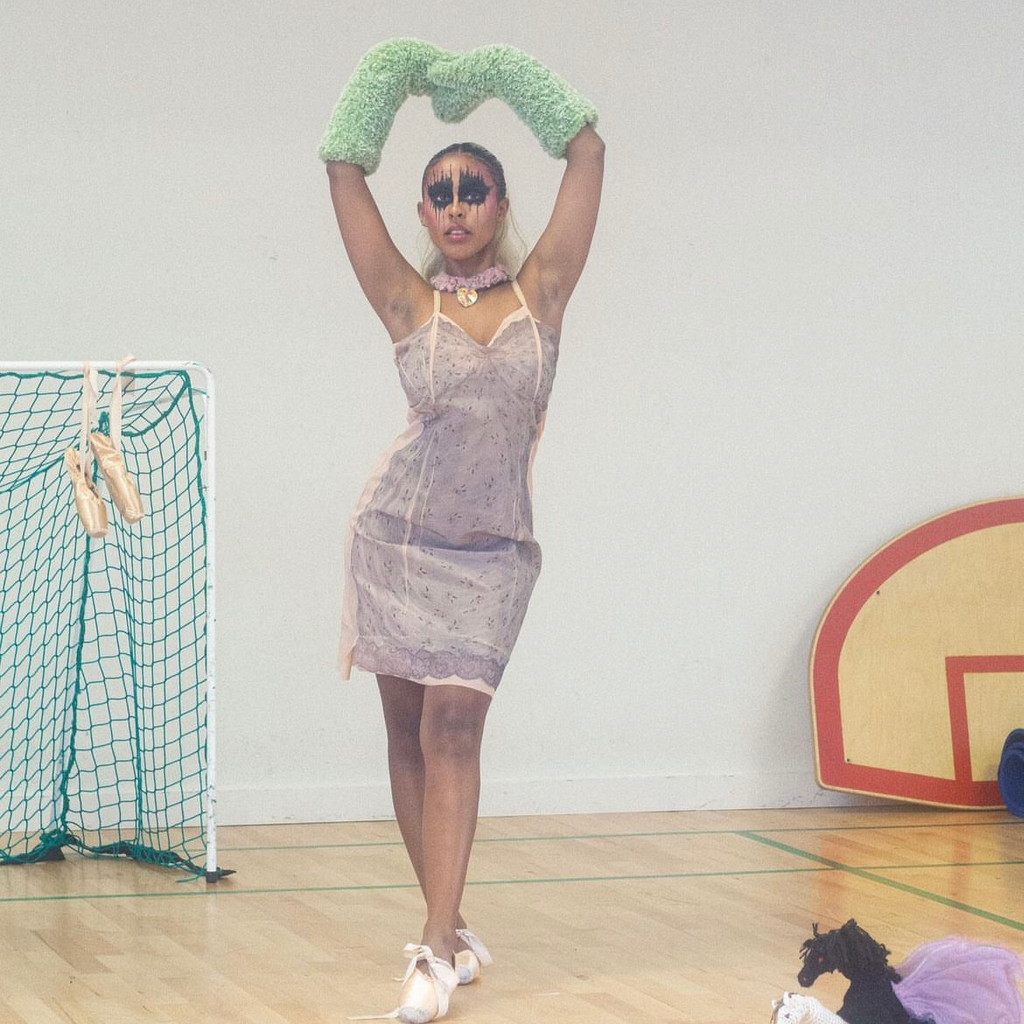 Semi stretchy and sheer nylon, with hand drawing printed on