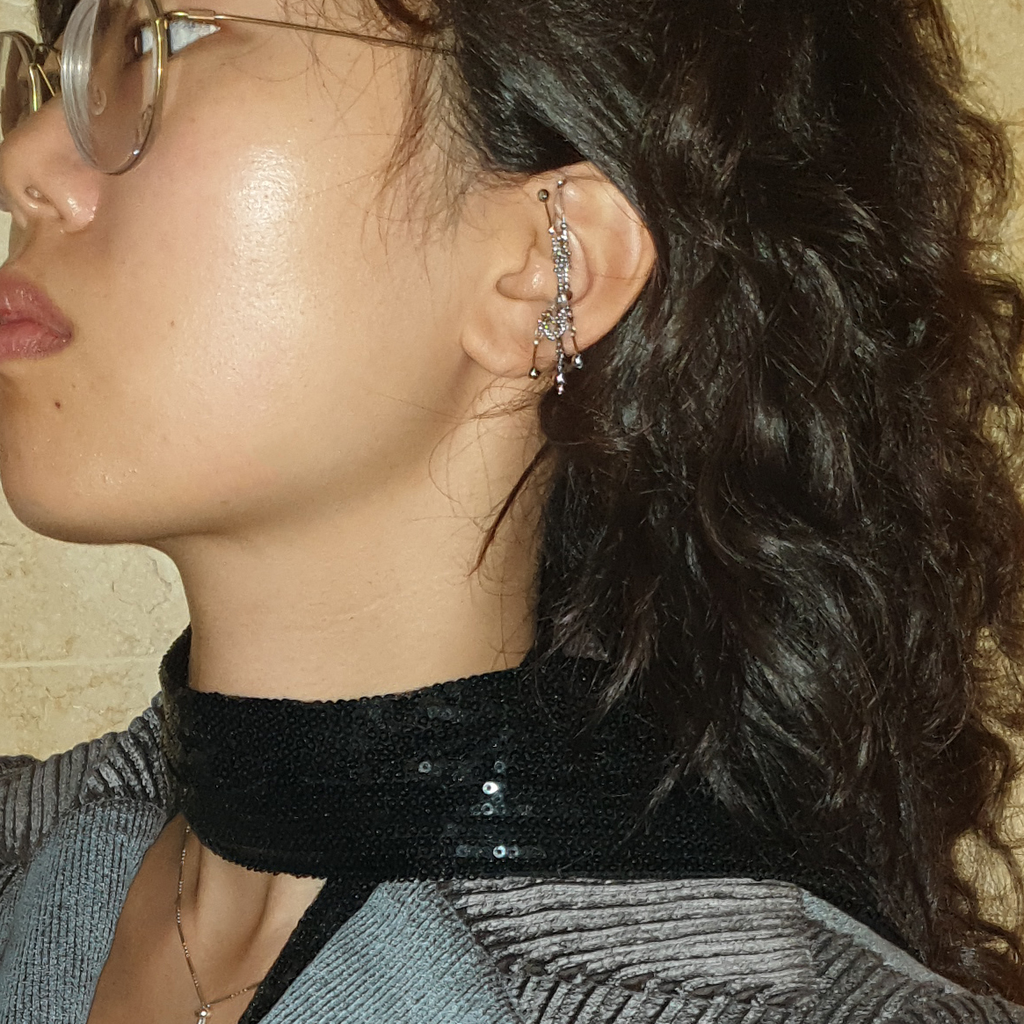 It is recommended to wear this piece in the inner ear like an ear cuff.