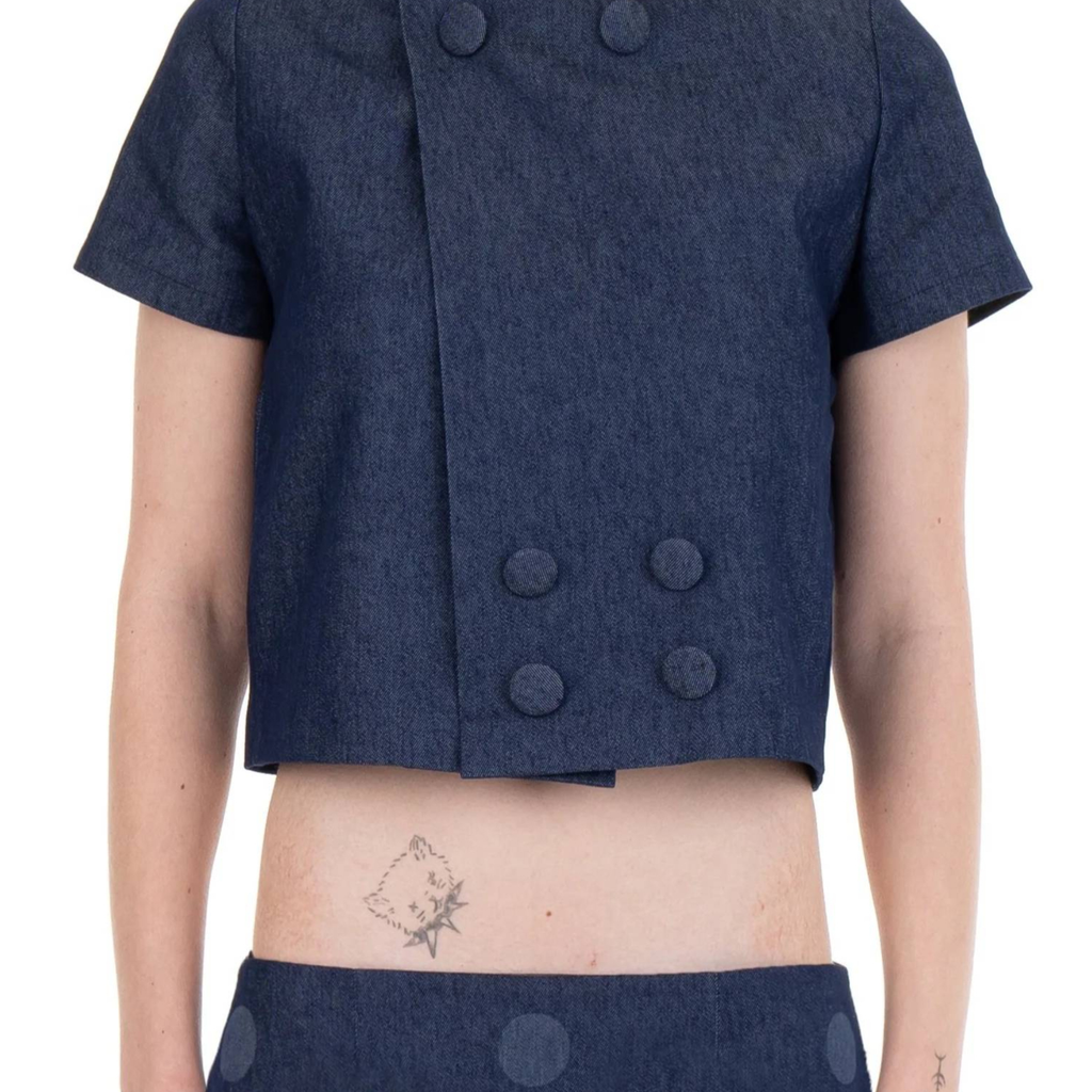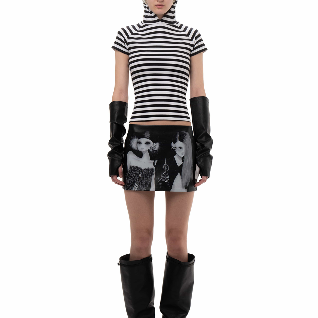 Mini skirt featuring a graphic print designer by Ruta Vebraite. Hidden zipper at back. Lined in wool fabric.