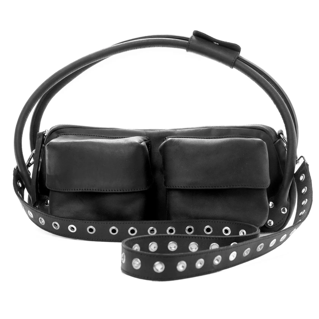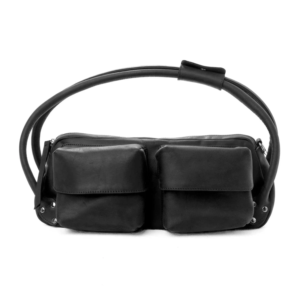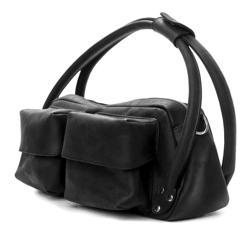 Our FAVA bag is made in a thick 'crazy horse' leather. The leather is 1.6 mm thick and has a pull-up and waxy finish. The bag has an aged, rustic look. It has a single compartment with zip closure and spacious front pockets with magnet buttons.