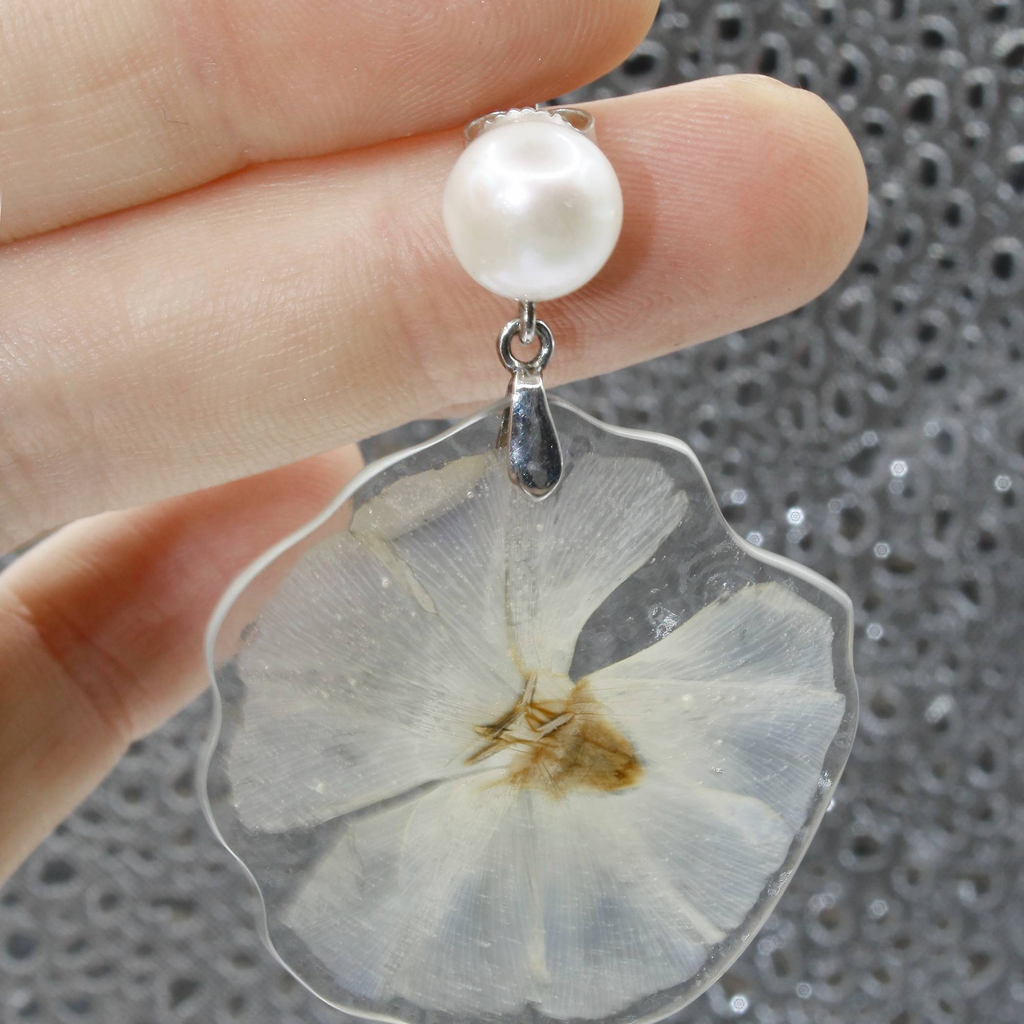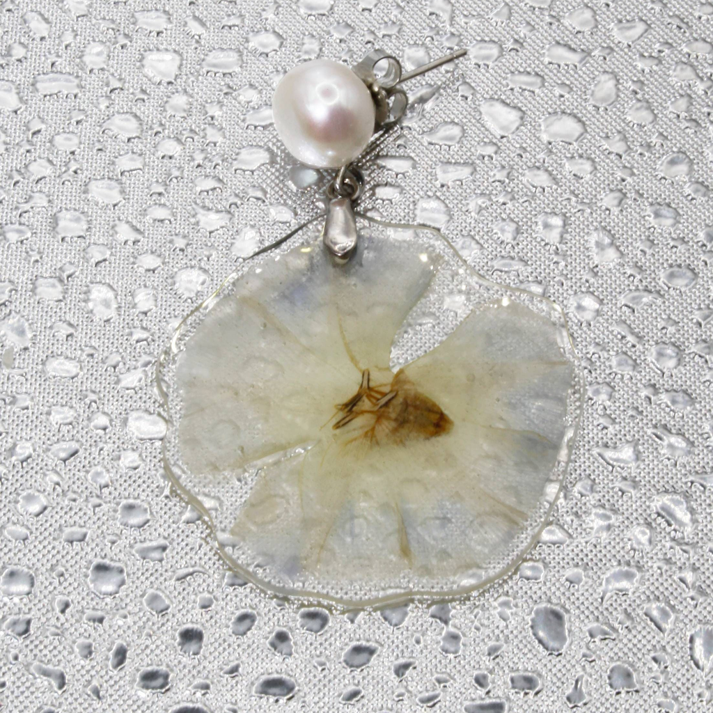 Main: 100% Sterling Silver, Freshwater Pearl, Pressed flower, Epoxy Resin