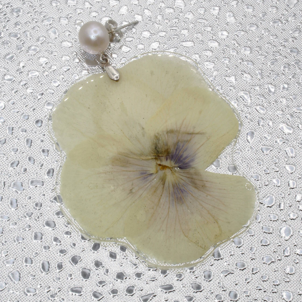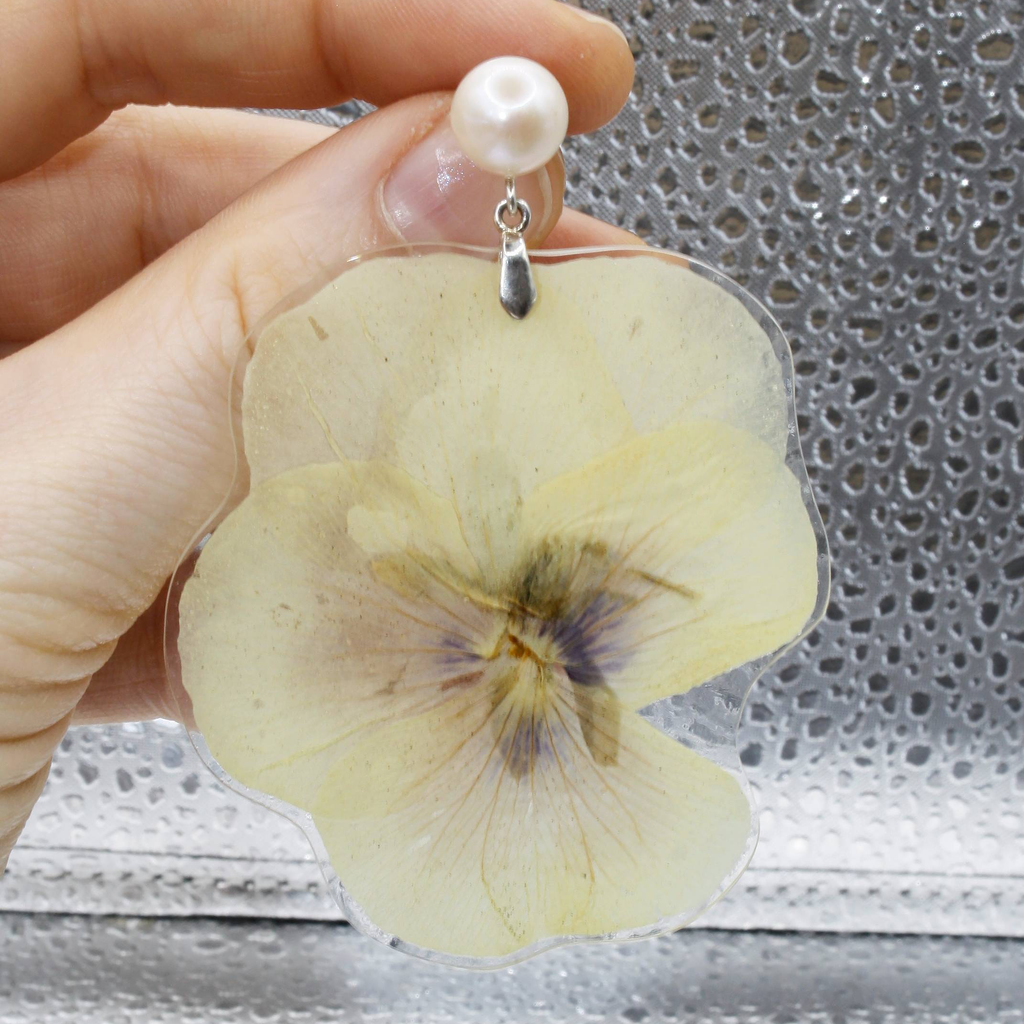 Main: 100% Sterling Silver, Freshwater Pearl, Pressed flower, Epoxy Resin