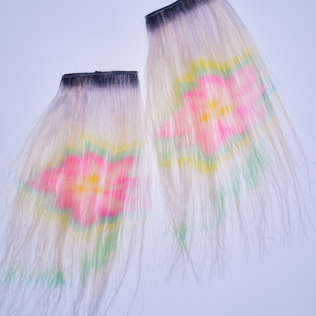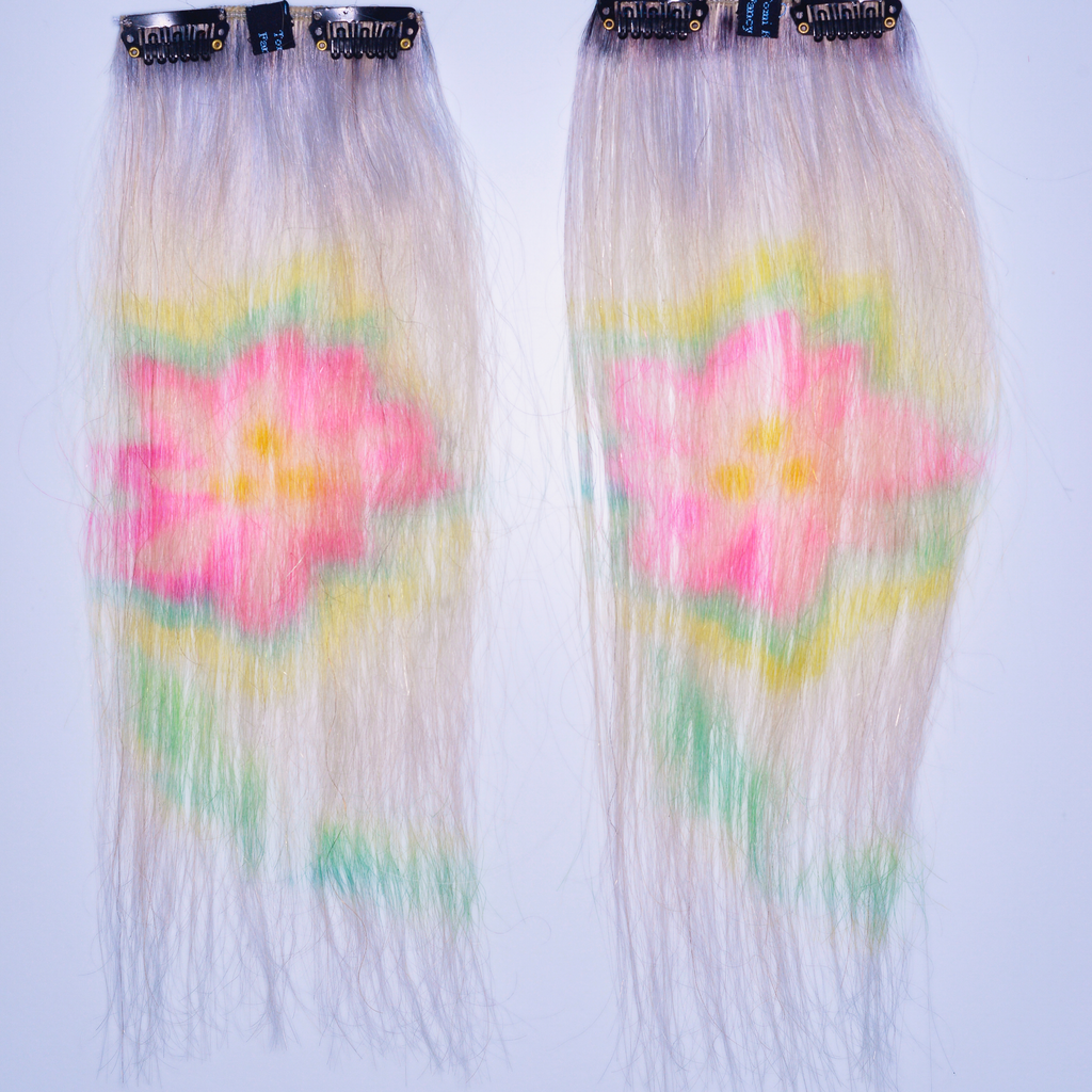 Materials: all hand-made, 100% Human hair, hand-dyed / clip-on