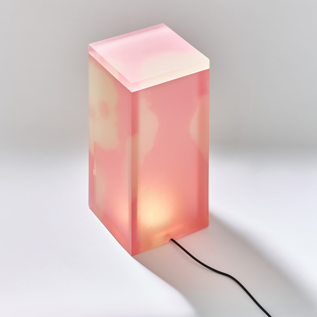 Table lamp made out of resin by Forever Studio featuring a flower pattern.