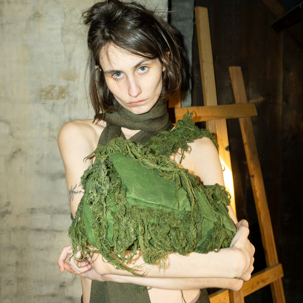 Adjustable Strap. Can be worn as a shoulder bag or cross-body.100% Organic Cotton Oilskin (the wet fabric is only for styling purposes)