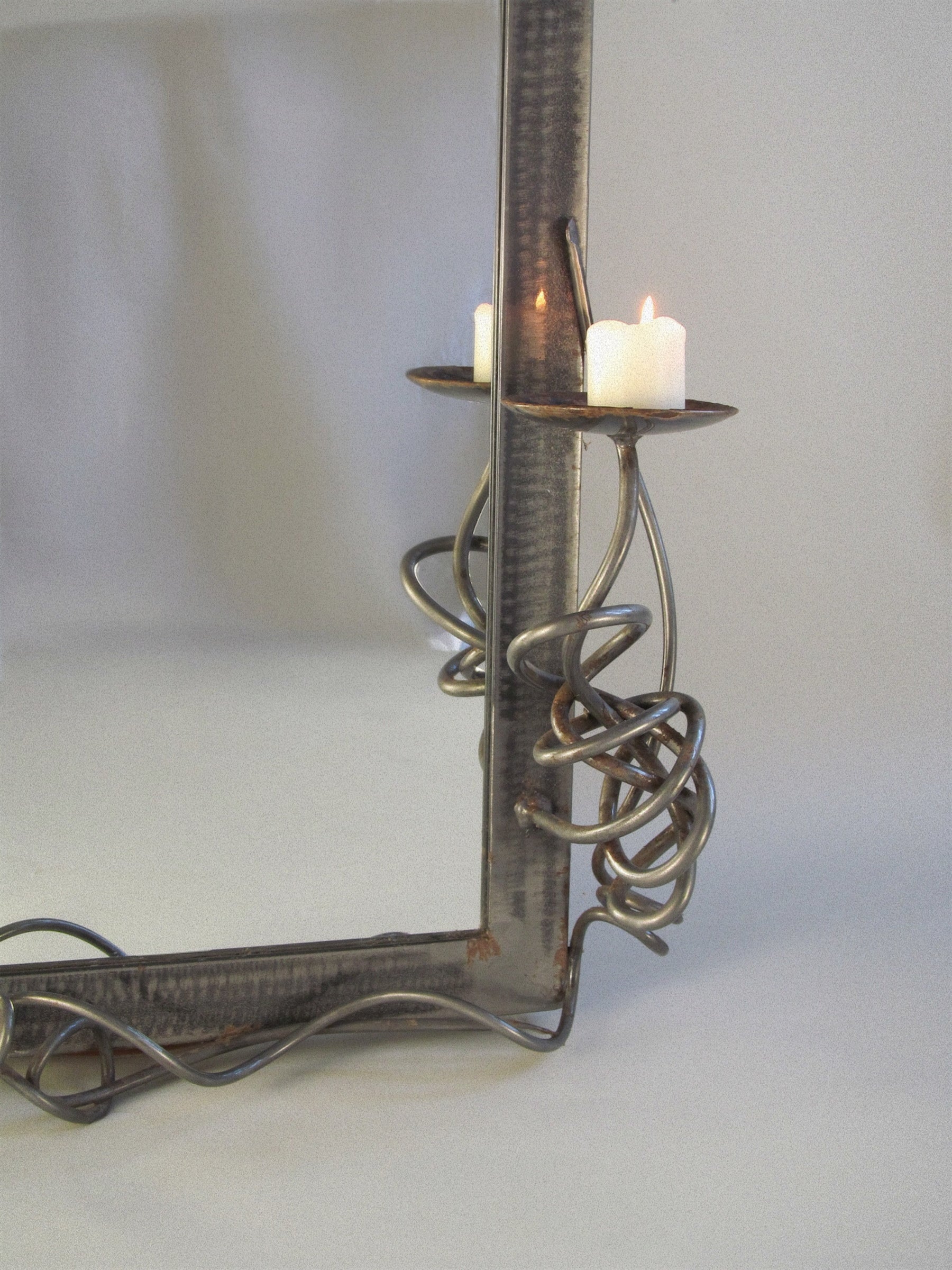 Lacquered steel frame with forged ribbon detailing and twin candle sconces — expressive british craftsmanship, c.1990. Please further note shipping is billed separately. You'll receive a tailored delivery quote within 48 hours of purchase.