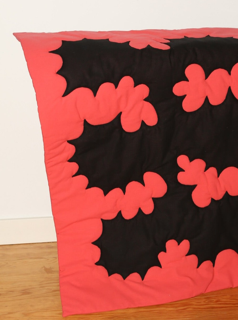 Handmade grenadine and black soft quilted wall piece or bedspread/blanket.