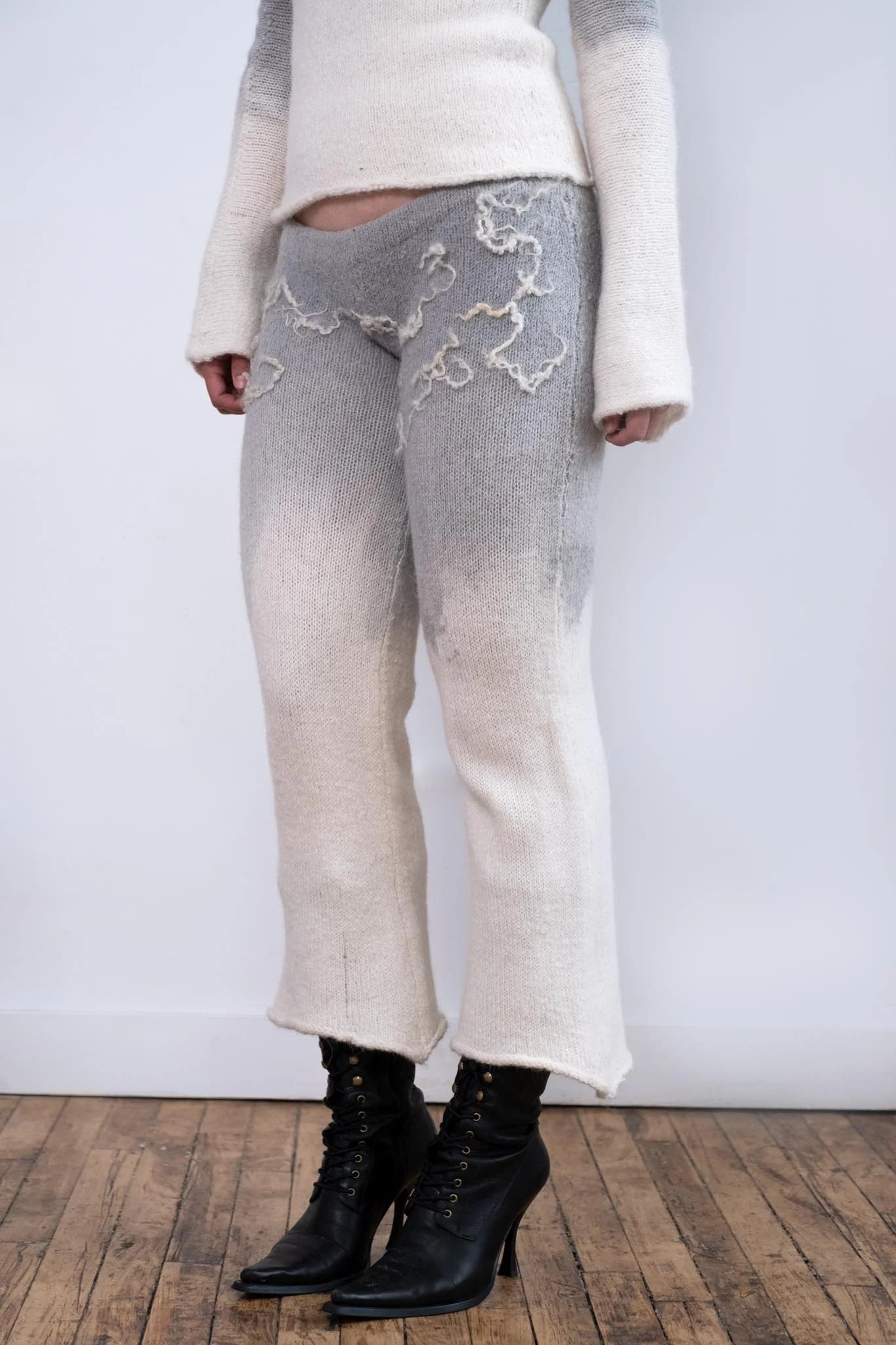 Fully fashioned hand-made Gradient Dyed Wensleydale Ink Painting Low Waisted Pant. Sizes available: XS, S, M, L Each piece will be slightly varied due to the organic nature of the production style and design process of GRACE GUI studio.