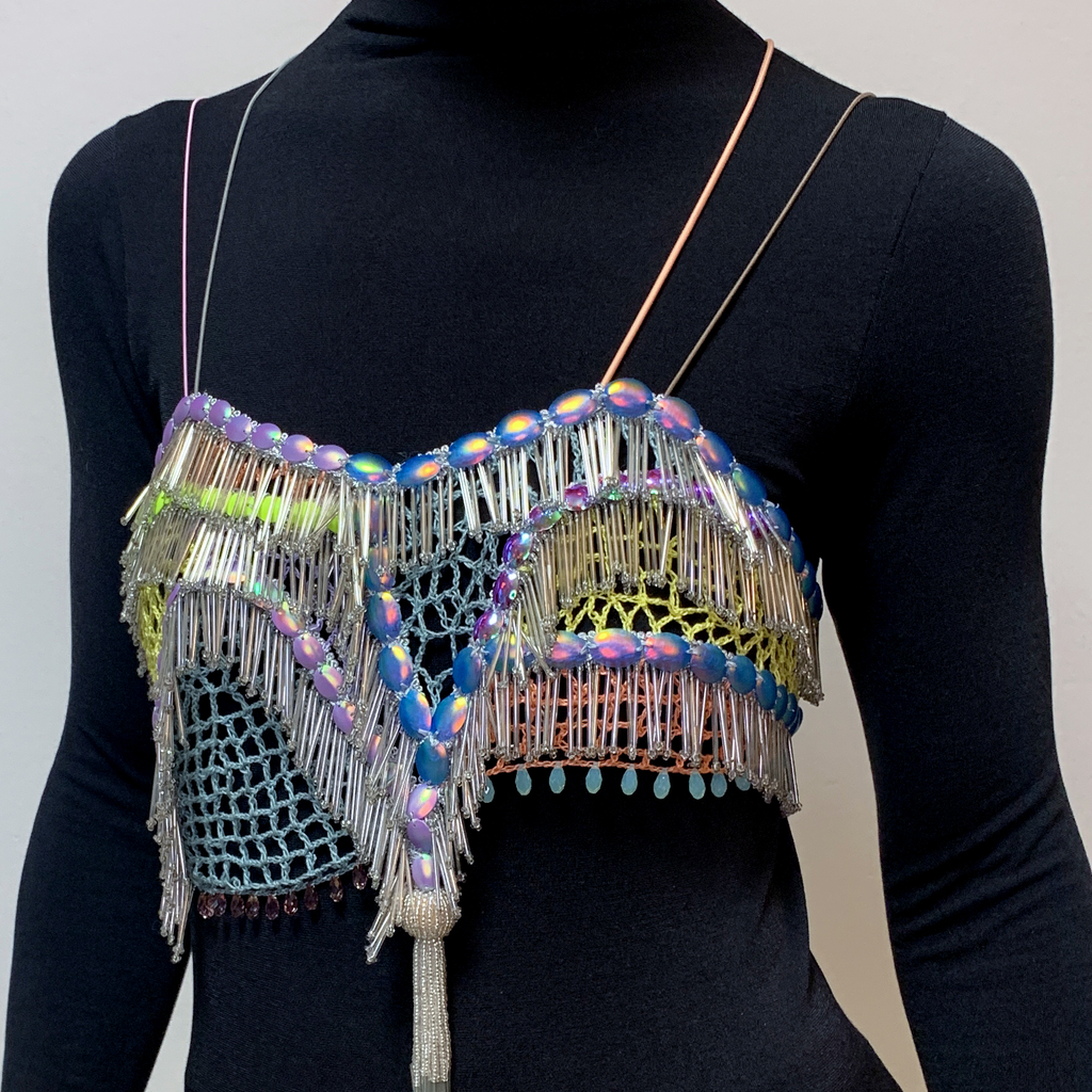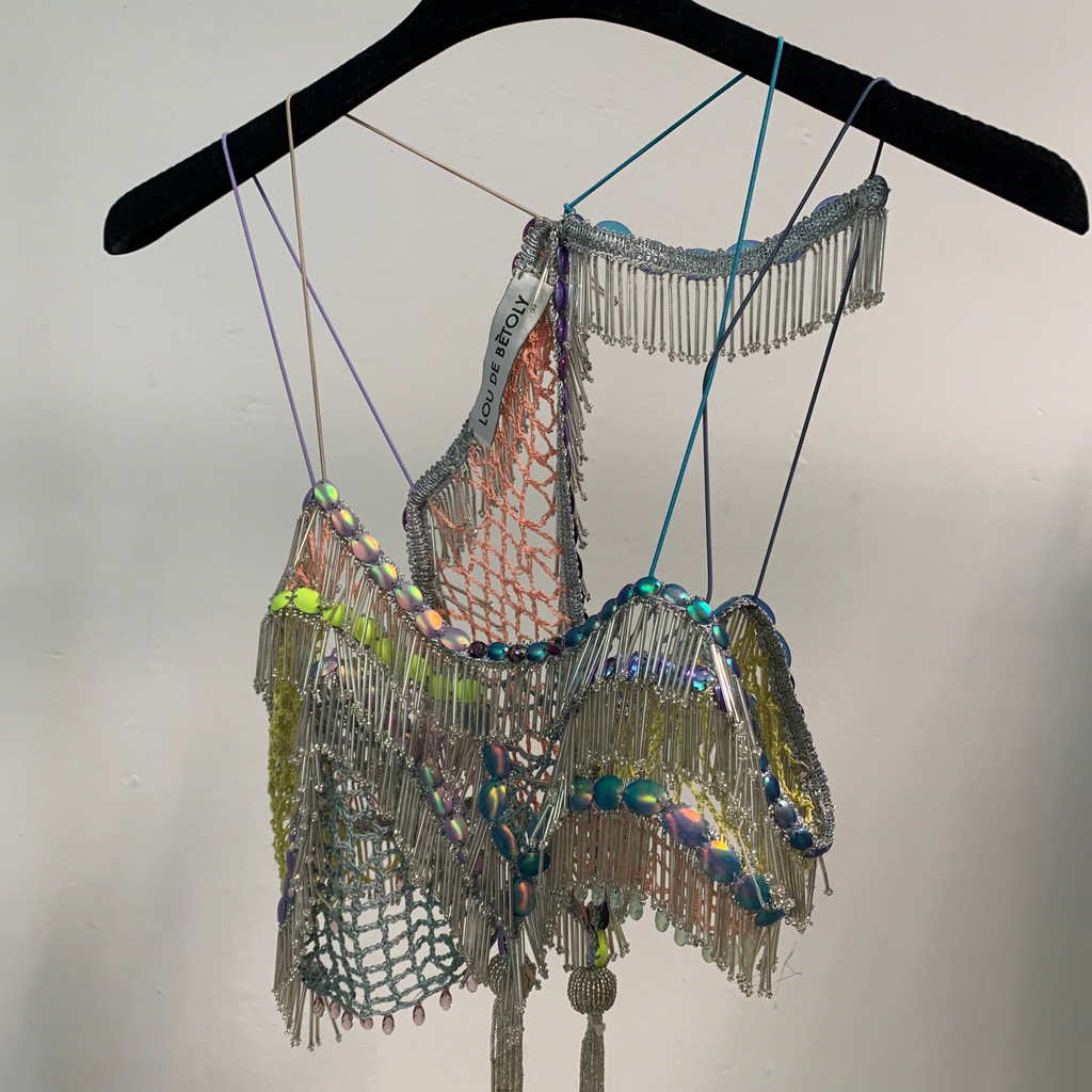 Lou de Bètoly is a French designer who works and lives in Berlin. Her main inspiration derives from chaos, surrealism, nostalgia, decadence, extravagance and oneirism. Adorned with embellishments, her intricately sensual crochet pieces reiterate her ‘wild at heart’ state of mind.