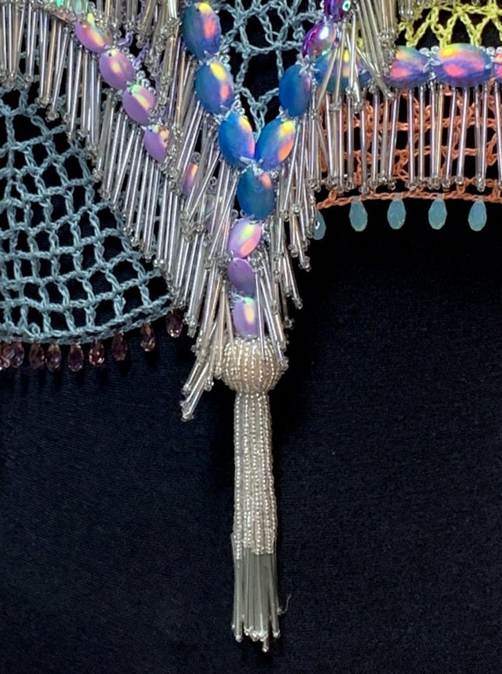 Made with Crocheted cotton, Glass beads, sequins, crystal pendants.Fully handmade in Germany