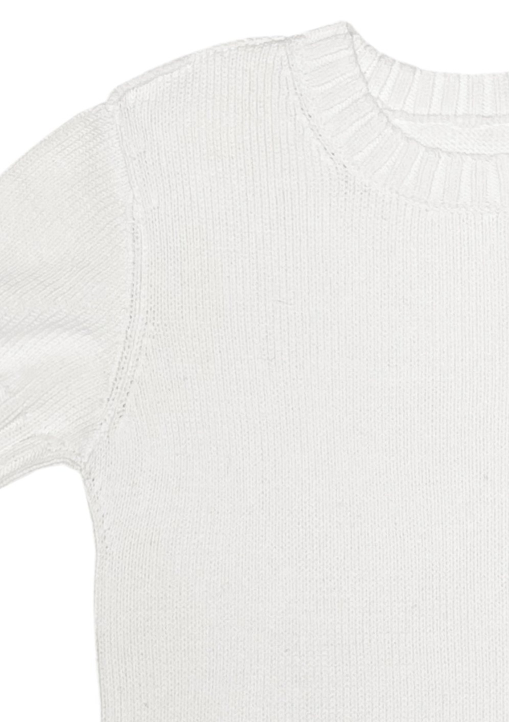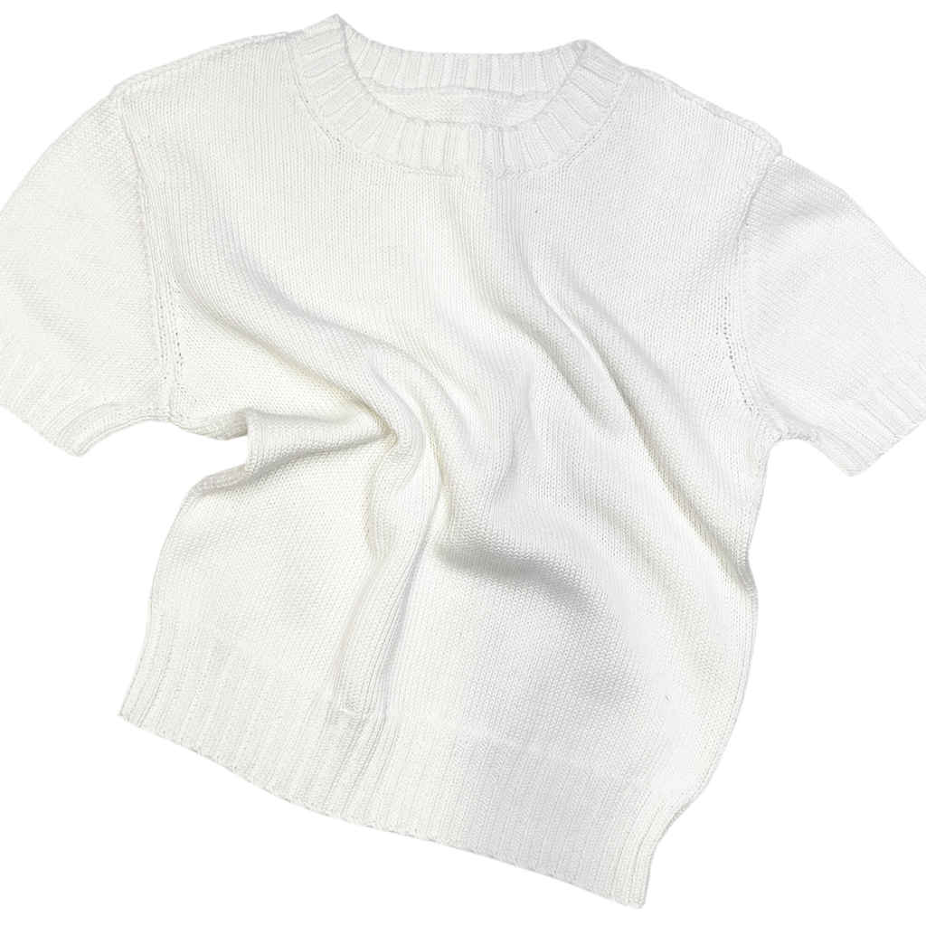 Plain knit short-sleeve in Off-white with exposed shoulder seams. Slight oversized fit.