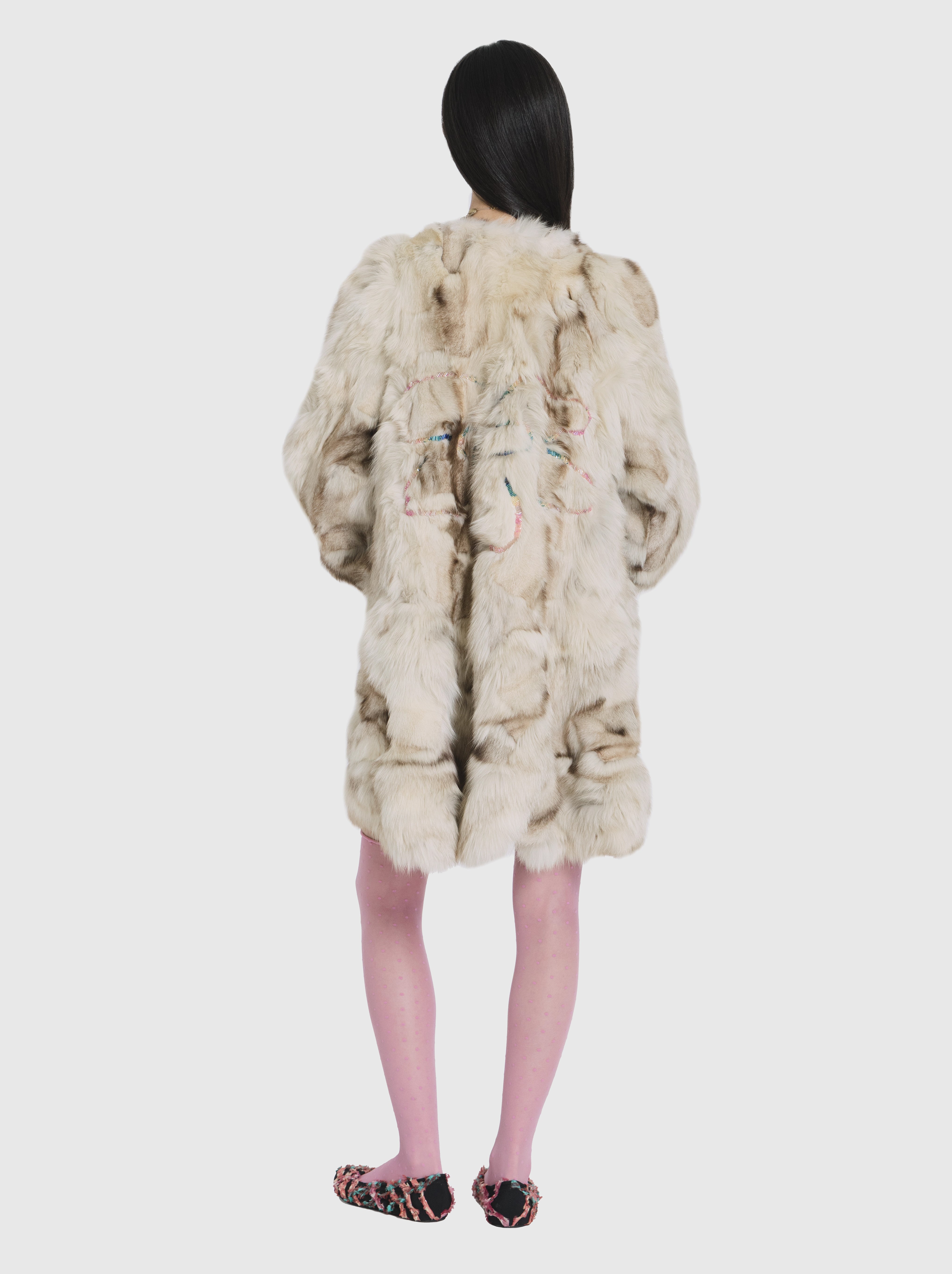 Fur coat with embroidery by Nensi Avetisian Upcycled garments from fall-winter 2025 collection are non-returnable