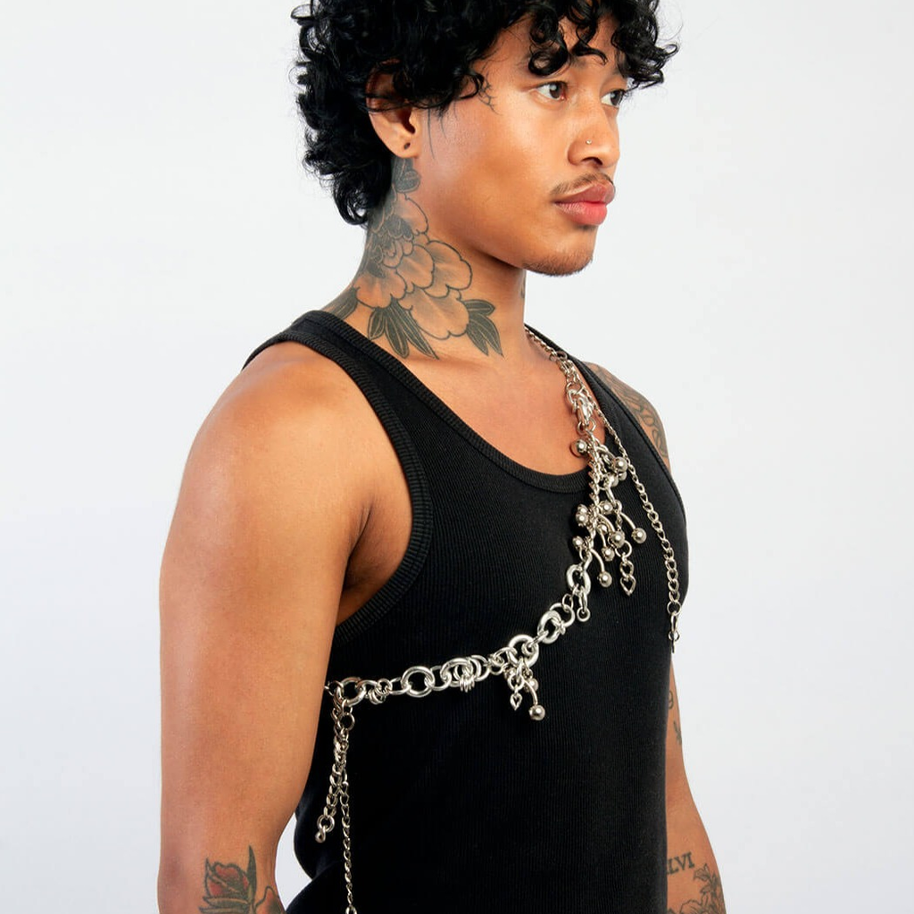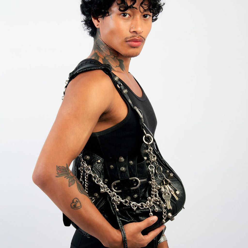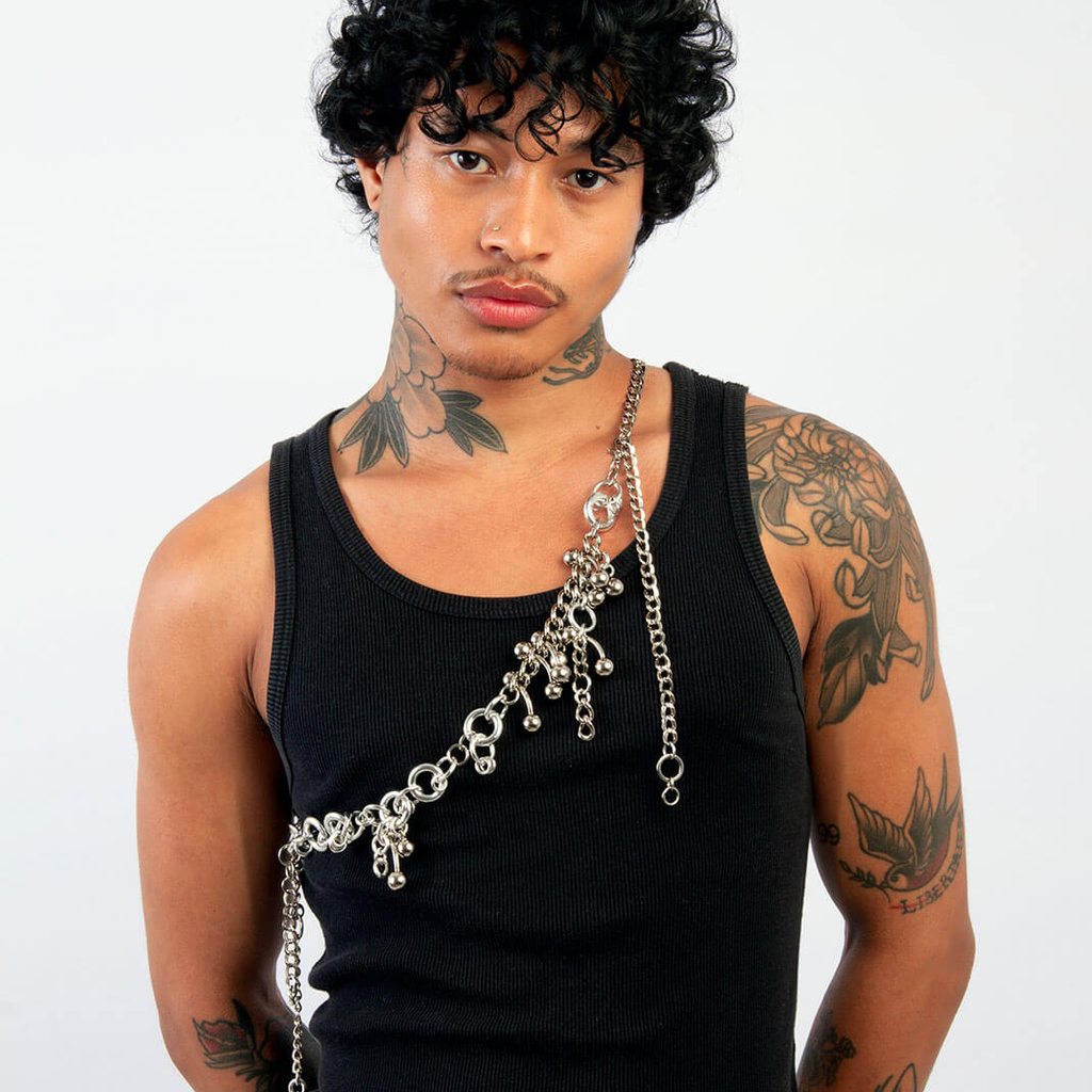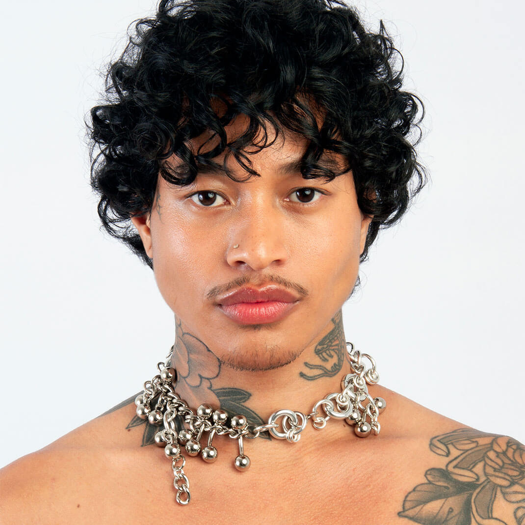 Jalaconda is a multidisciplinary artistic project, focused on the body. The LGBTQIA+ brand researches unconventional materials, such as latex, steel and natural Brazilian stones. They aim to discuss the place of manual work and personal adornment, knowing that clothes are fully political as they are from a country historically full of complexities.