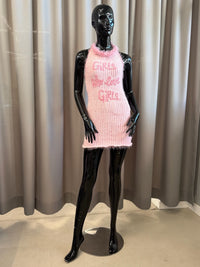 "peeing girls" crochet vest pink blue