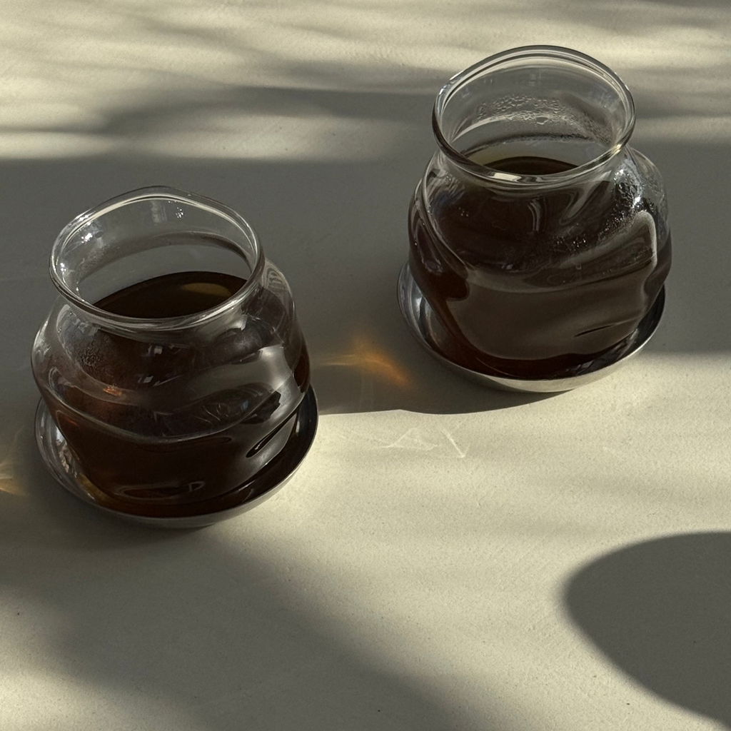 Handcrafted with care using the blown glass technique, each of these unique cups celebrates organic, imperfect shapes.