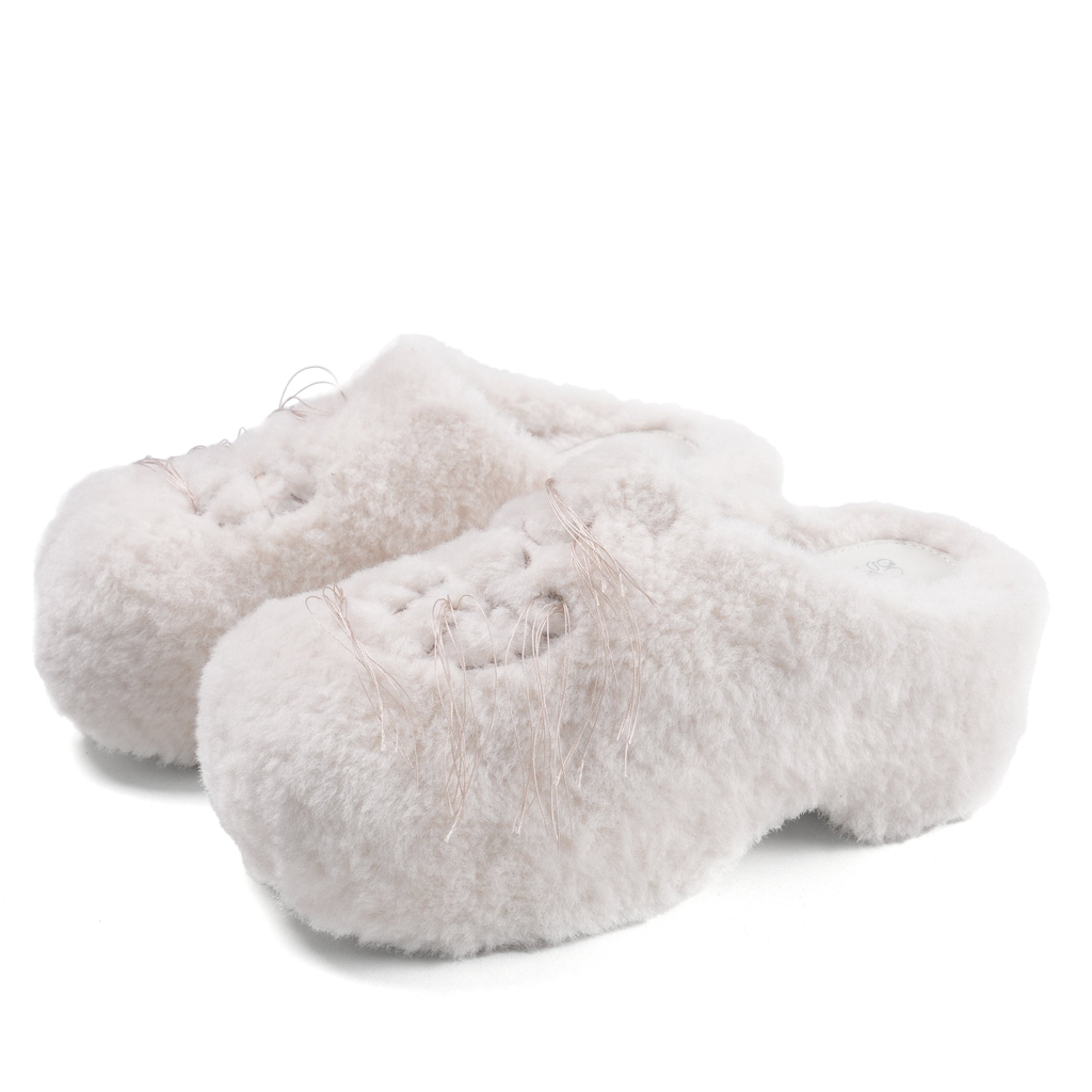 Materials: Fluff shoe upper, sheepskin combined with mesh shoe lining, leather insole, rubber sole