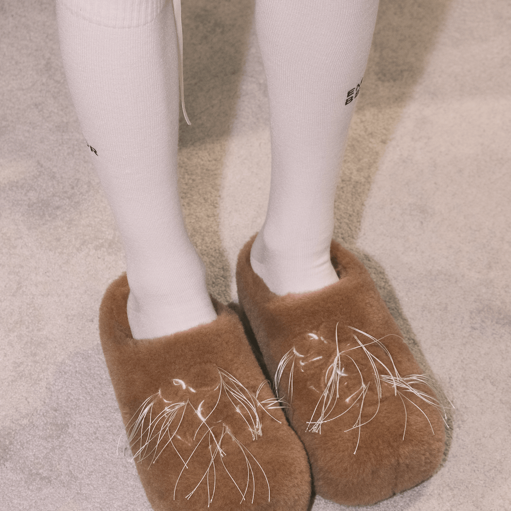 Materials: Fluff shoe upper, sheepskin combined with mesh shoe lining, leather insole, rubber sole