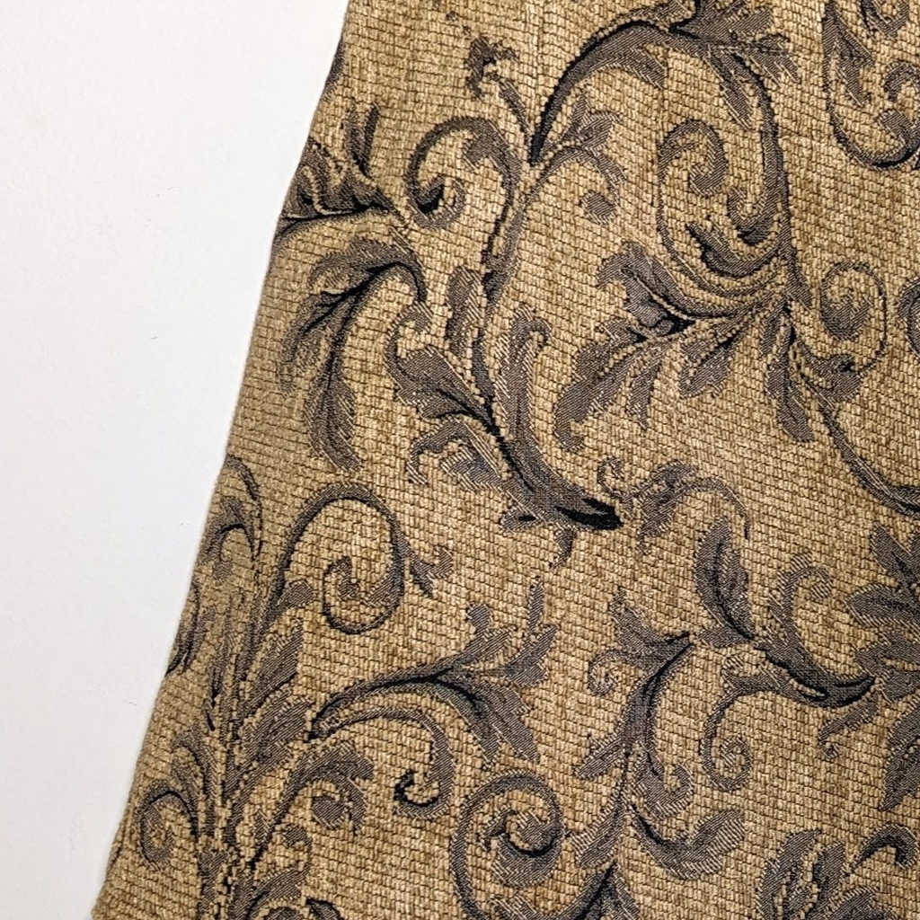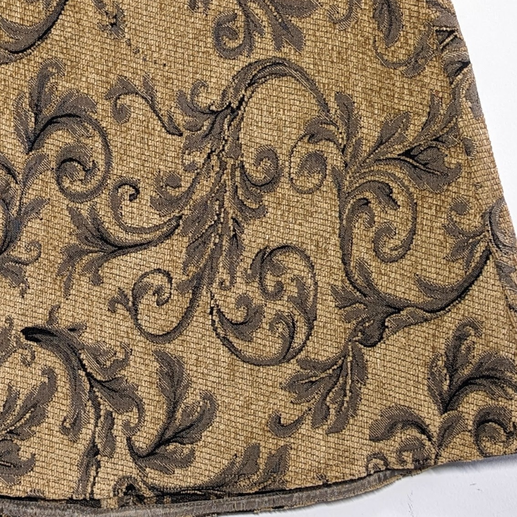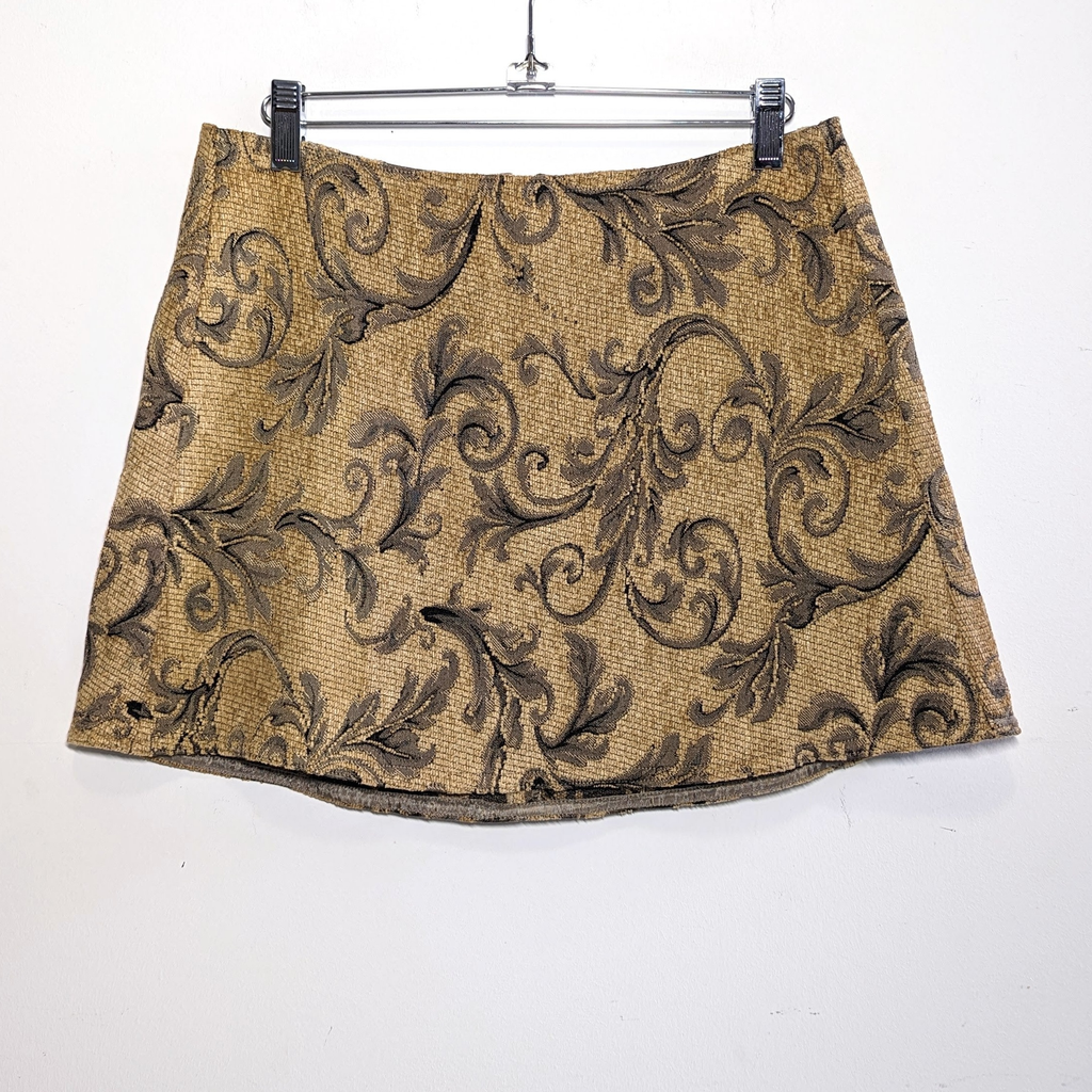 Mini skirt made from vintage floral upholstery fabric in a soft textured gold chenille. Unlined. Invisible zip closure at center back.