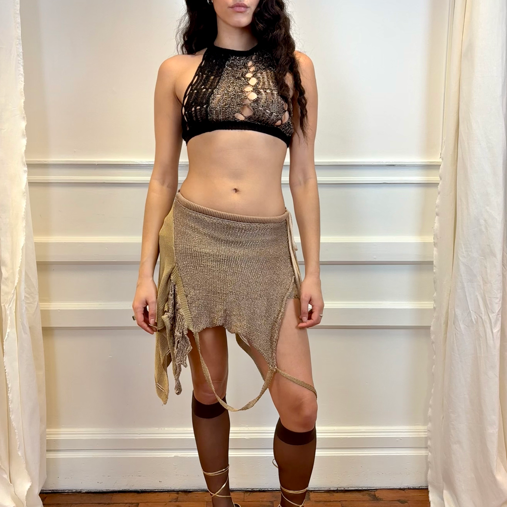 gold layered knit skirt